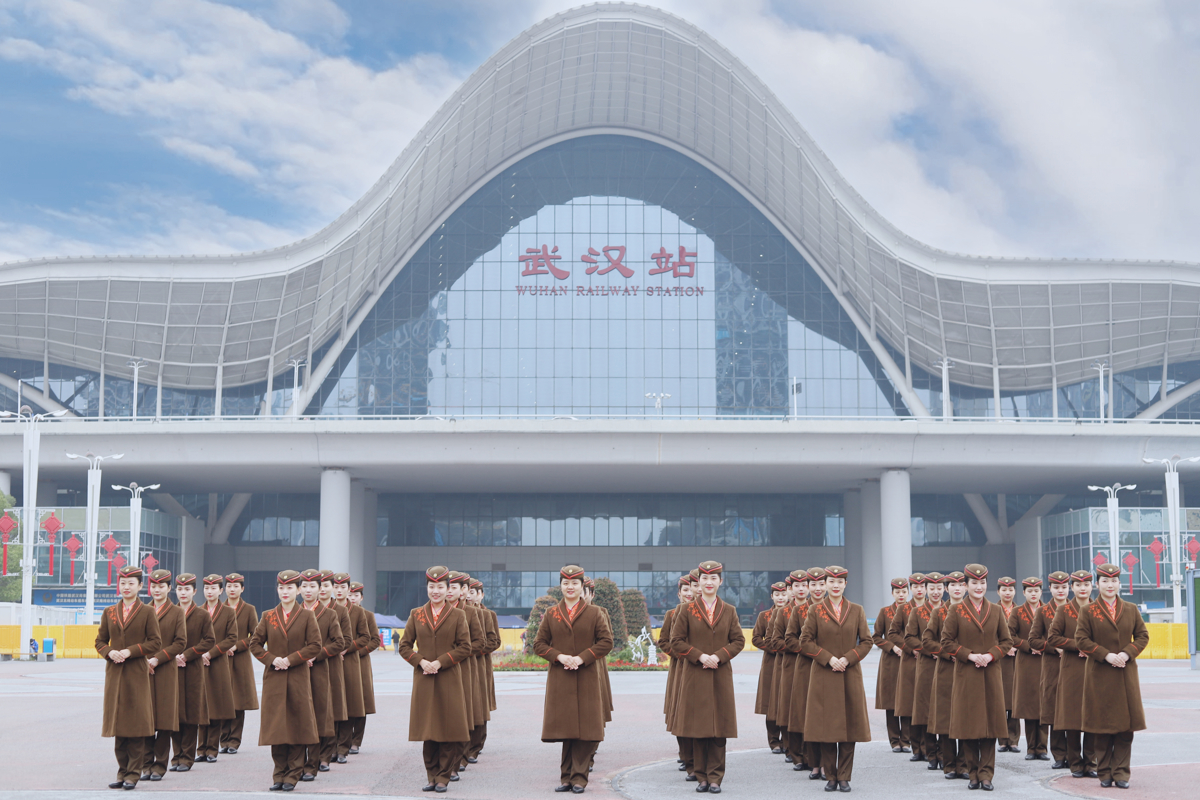 2025年春运前夕,中国铁路武汉局集团有限公司武汉客运段春运动员合影。通讯员 肖冬桂 摄