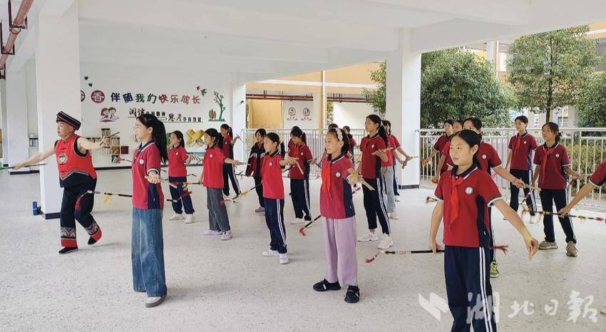 湖北日报客户端讯(通讯员 杨娜 龙青)近日,宣恩县沙道沟镇松坪实验小学的操场上鼓声阵阵、铜钱脆响,该校非遗社团的学生们手持彩饰连厢杆,娴熟演绎“鹤鹰展翅”“睡龙翻滚”等经典招式,生动展现了沙道沟镇深耕非遗校园传承的实践成果。