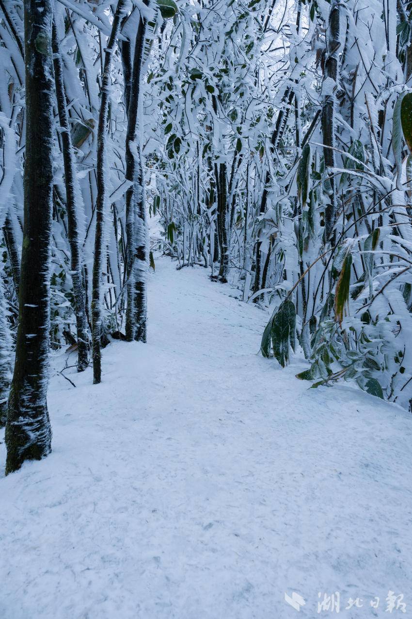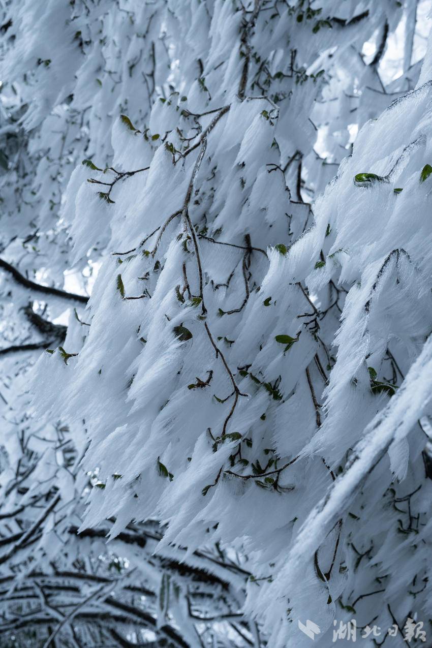 咸丰县黄金洞乡水杉坪村四方梁上的雾凇景观。(湖北日报客户端通讯员 姚松材 摄)