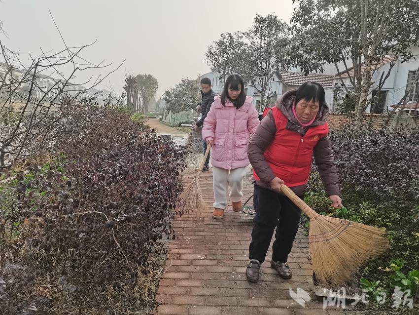 驻村干部、生产大队党支部书记关文丽和志愿者们一道,忙着检查十字河两岸和村湾房前屋后的卫生。有人蹲在亲水绿化带、“三小园”里拔杂草,有人给成排的红叶石楠整枝。修整好的红叶石楠立在那儿,红得像燃着的小火把,花瓣又刚劲又娇艳,满是鲜活的生机。