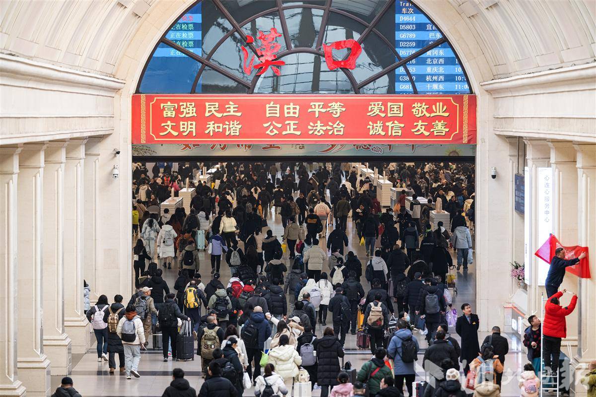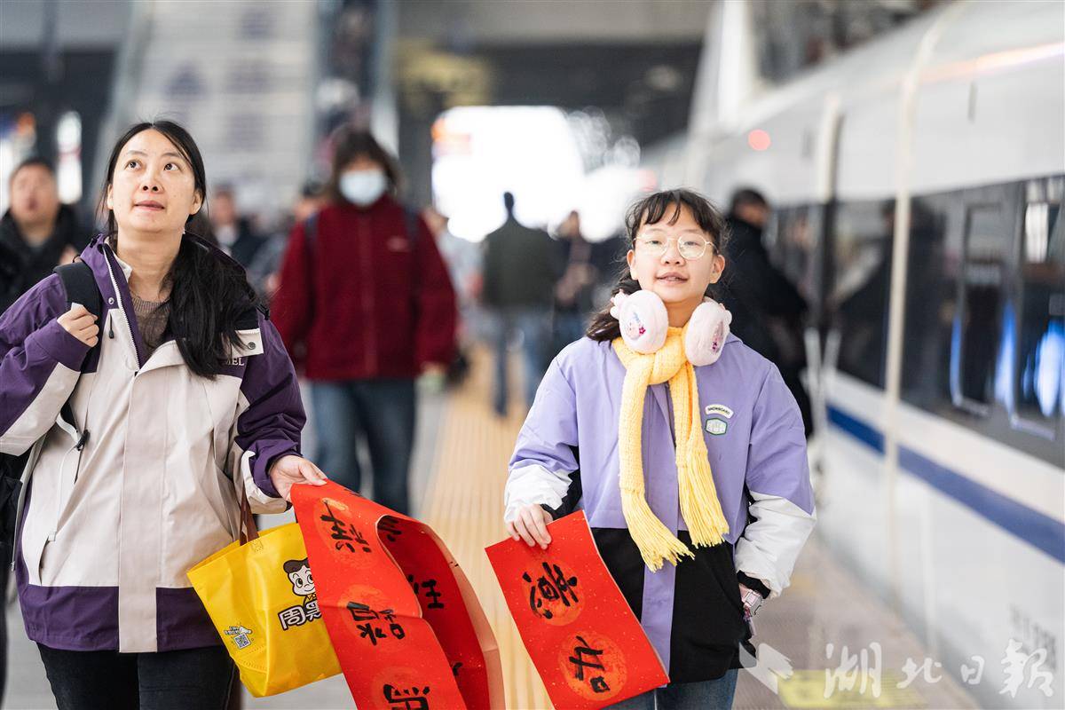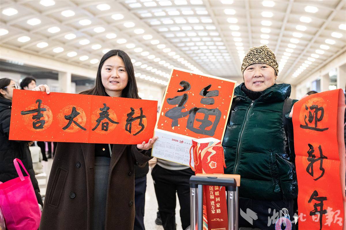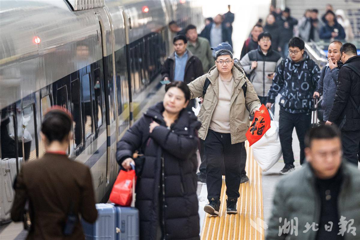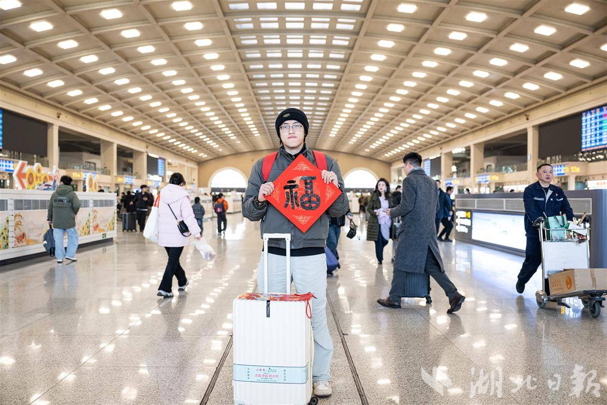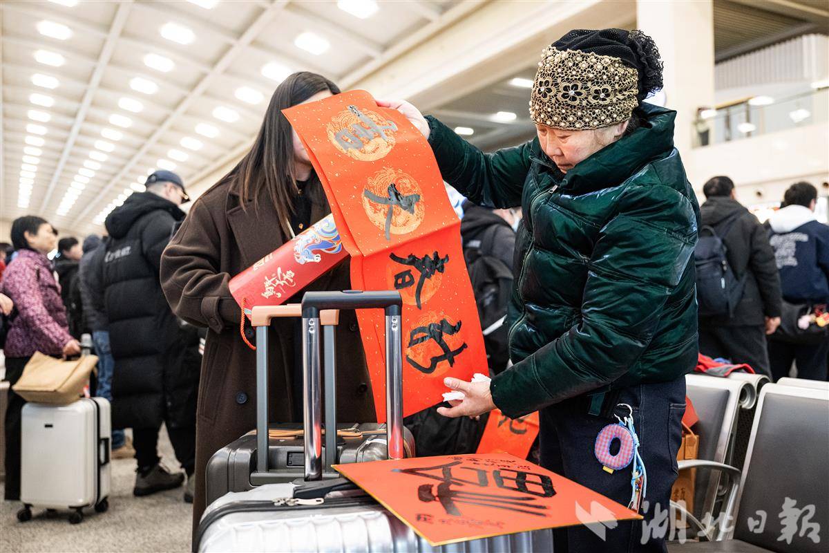 2月2日,2026年春运首日,不少旅客带着“福”字和春联在汉口火车站乘车返乡。当日,2026年春运正式开启,为期40天的春运将持续至3月13日。据交通部门预测,今年春运期间,全国全社会跨区域人员流动总量将再创历史新高,预计达到95亿人次。(湖北日报全媒记者 任勇 通讯员 宋萍 邱晟 摄)