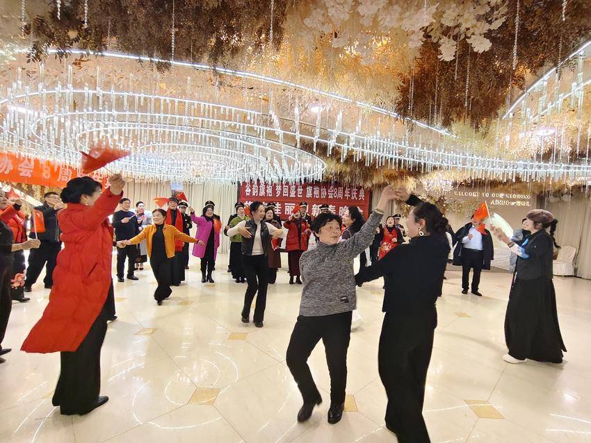 江伟带来的男声独唱《草原上升起不落的太阳》嗓音浑厚、荡气回肠;刘瑞信的红歌六连唱、冷艳的女声独唱《前门情思大碗茶》以经典旋律唤醒美好记忆,引发全场共鸣;李风琴、胡芳等人的诗朗诵《春江花月夜》《锦袍雅韵 岁月沉香》,用优美的文字诠释旗袍文化与古典诗词的交融之美;旗袍协会自编自演的三句半《旗袍趣事》诙谐幽默、贴近生活,让现场笑声不断。