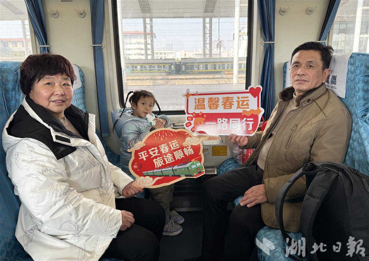 2月2日12时34分,武昌开往应城的K8116次列车从武昌站驶出。这趟全程1小时41分、全列硬座的临客列车,主要服务务工、探亲等短途返乡“刚需”客流,呈现午间错峰疏解、硬座需求突出的特点。 为保障旅客平安有序出行,武汉客运段武昌西线乘务车间提前组建志愿服务队,在乘车引导、重点帮扶、问询解答等环节提供全流程服务。列车工作人员以细致周到的举措,守护每一程短暂却温暖的归途。(湖北日报全媒记者 李溪 通讯员 陈姚 摄)