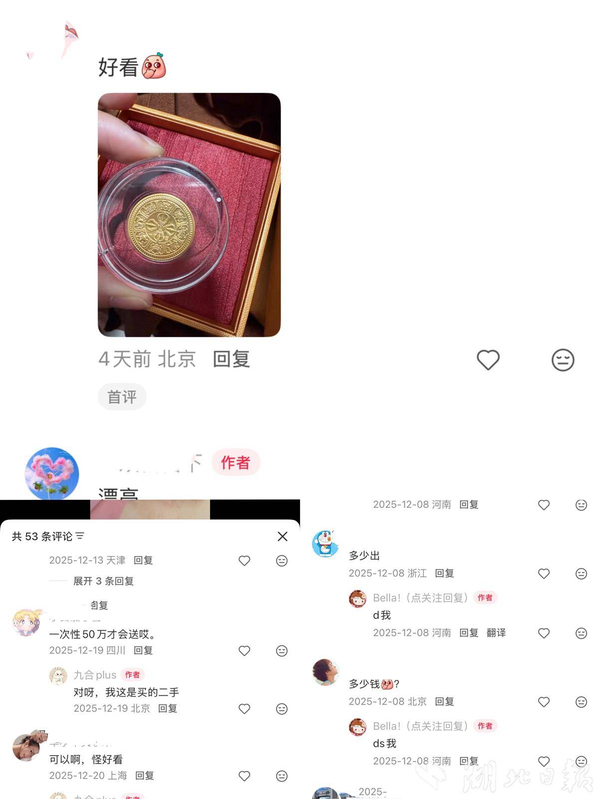 顾客展示的此前获赠5g金币,浮雕图案精美,让不少网友“种草”