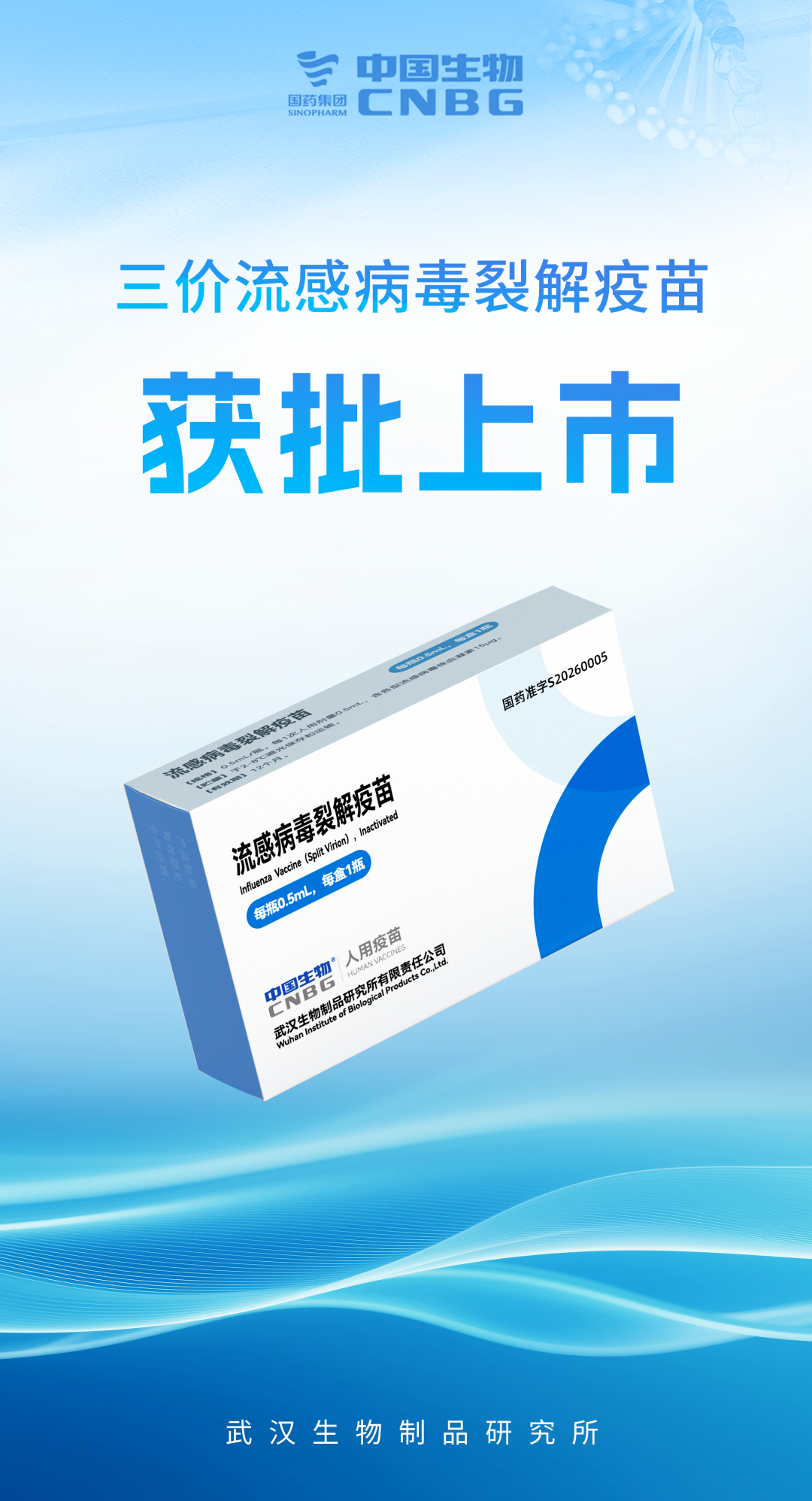 武汉生物“三价流感病毒裂解疫苗”获批上市