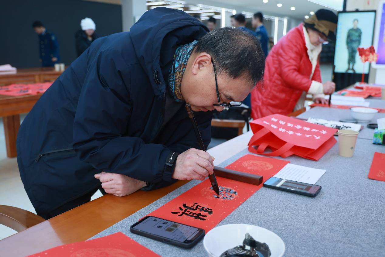 老同志们泼墨挥毫、精巧创作,一幅幅春联福字气韵生动,一张张窗花年画寓意吉祥,既承载新春祝福,更彰显军民鱼水情深的深厚情谊。学员们围在创作者身旁,帮忙铺纸调墨、整理作品,驻足欣赏传统技艺,现场其乐融融。官兵们在观赏体验中,近距离感受书法艺术与传统民俗的独特魅力,领略国学文化的深厚底蕴。