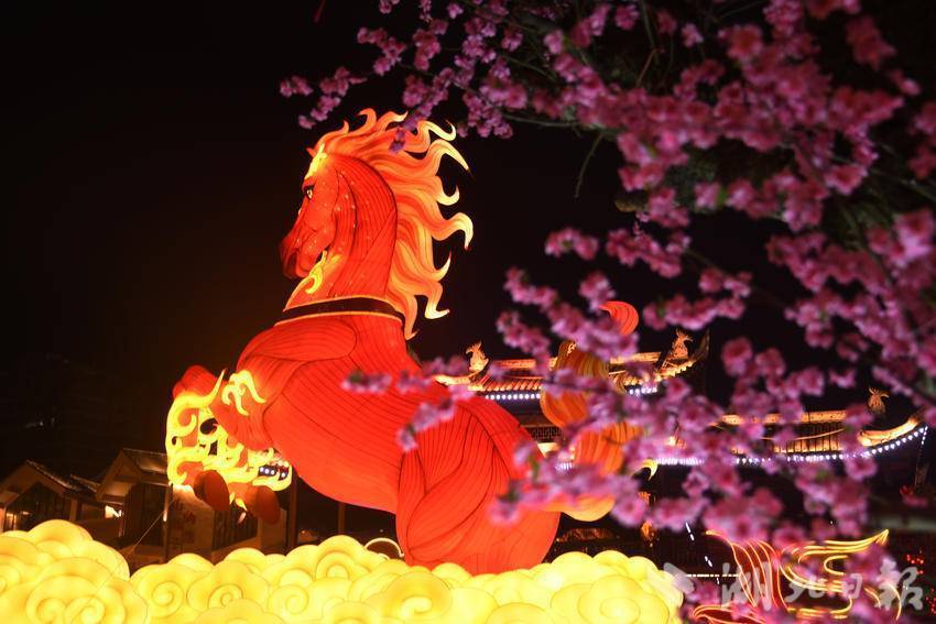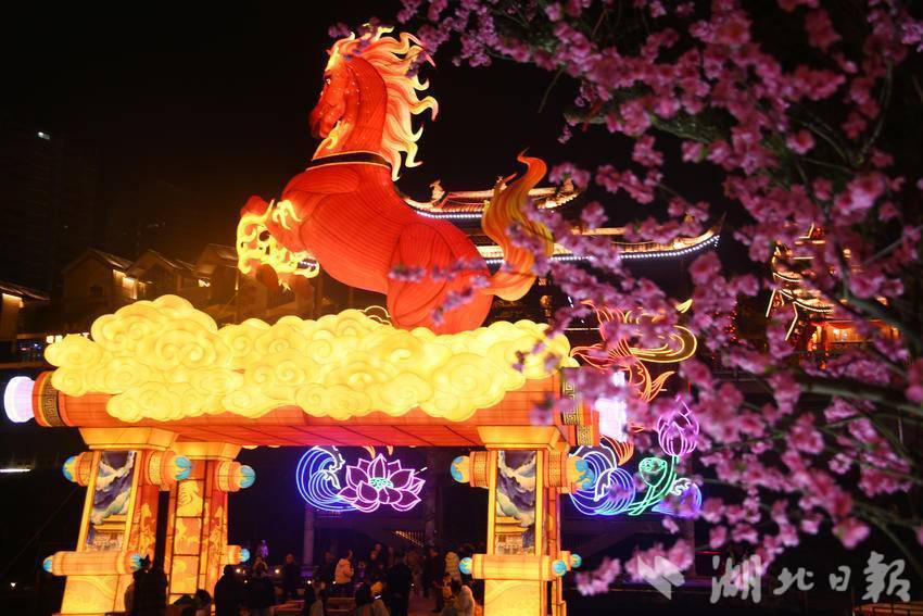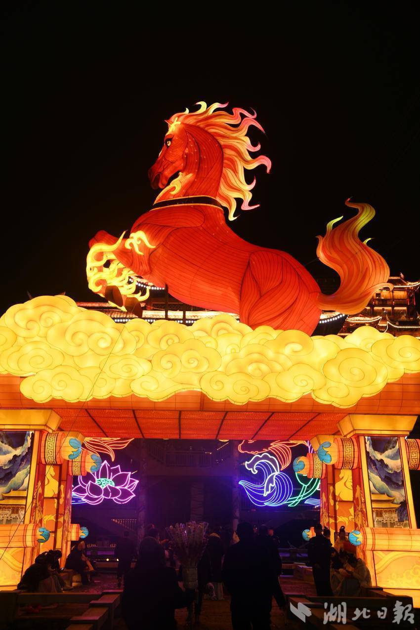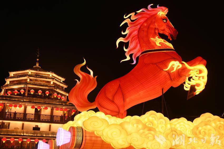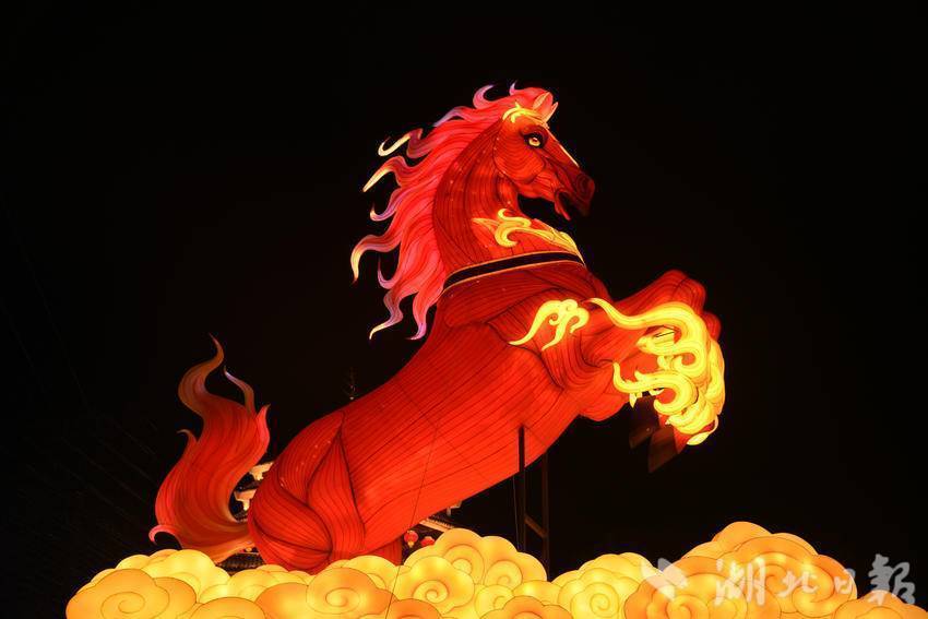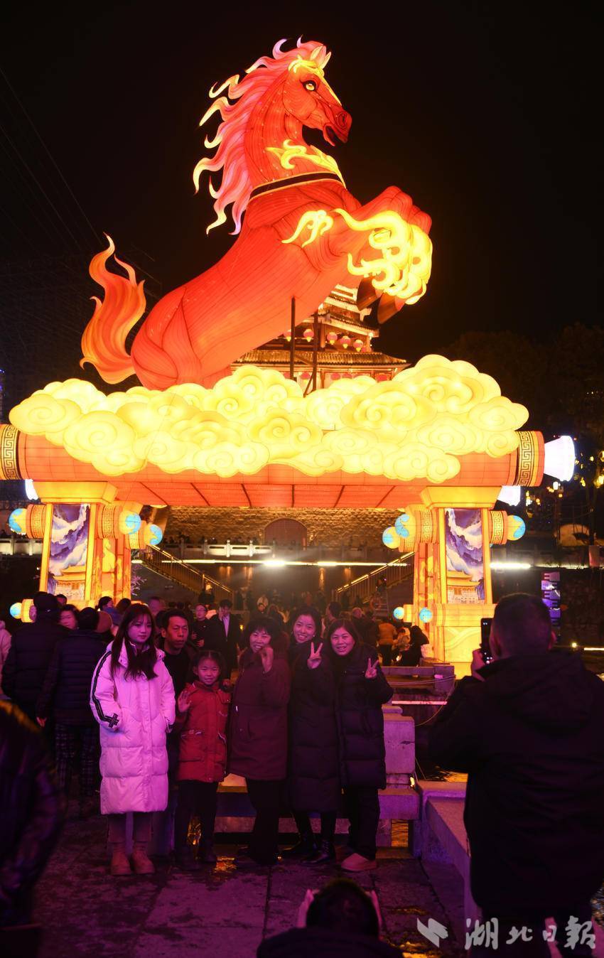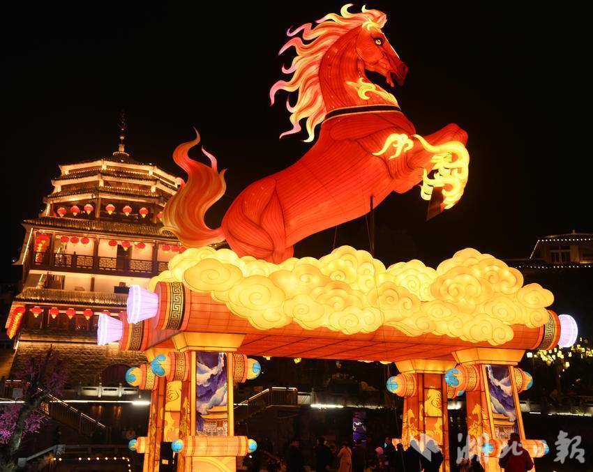 湖北日报客户端讯(通讯员王俊 )近日,宣恩县在县城贡水河上布置的马年元素彩灯迎来亮灯,吸引众多游客和市民打卡,喜迎新春佳节。图为1月31日在宣恩县县城拍摄的马年元素彩灯。