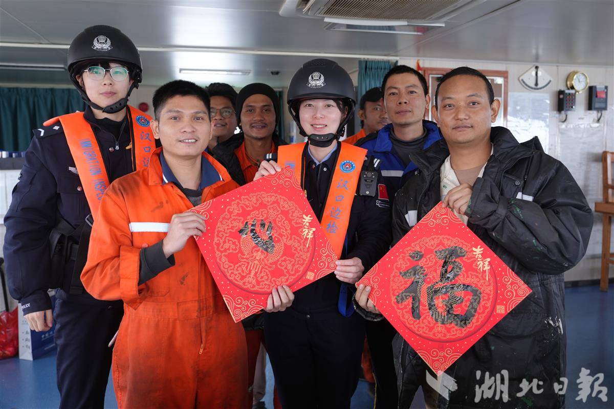湖北日报讯(记者张爱虎、通讯员胡艳)2月3日,武汉阳逻港迎来春运首艘巴拿马籍入境外籍船舶,该船从公海抵汉,载运7438.3吨镍湿法冶炼中间品。针对春运武汉港船舶流量激增特点,汉口边检站整合通关全流程、科学调配警力,依托“AR鹰眼”智能系统赋能,让船舶平均靠泊时间缩短30%,企业物流成本下降20%。该站还推行“一船一策”定制服务,实现船员“刷脸”通关、电子登记,打造畅通便捷的春运水上通道,获常年往返武汉与印尼的船长郑好点赞。随后,边检民警还为外籍船员写福字,让外籍友人把中国新春的美好祝福带回家。
