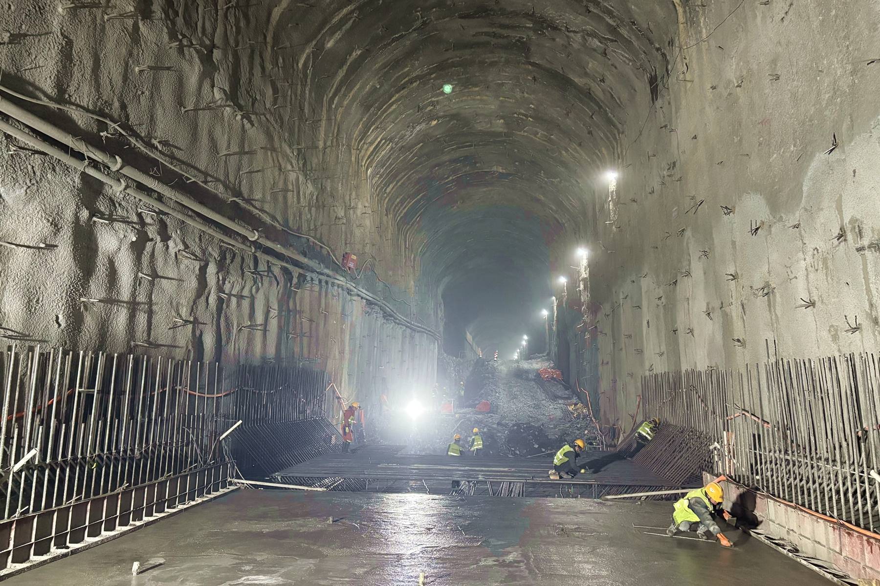“导流洞正在进行二衬混凝土浇筑,完成后将形成1.2米厚的地下过水通道,最大过水能力可达2500多立方米/秒。”姚家平水利枢纽工程第2标段项目部工程技术部副主任陈浩介绍,导流洞需使用5年,必须承受长期的水流冲刷与冲击。提高清基精细度,能显著增强混凝土与岩层的粘结力,确保结构长期稳固与运行安全。