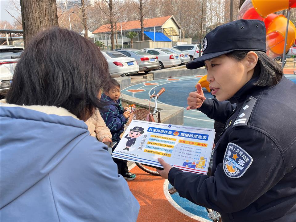 午后暖阳正好,邵楠的身影又出现在社区广场上。带着她自创的反诈宣传海报,结合近期高发的“春节红包诈骗”“冒充亲友借钱”等案例,用通俗的语言向居民讲解防范技巧,“春节前后是诈骗高发期,得多跟大家念叨念叨,守住咱们的‘钱袋子’才安心。”邵楠一边给老人讲解手机反诈设置,一边说道,“大家收到陌生的链接、二维码千万别点,儿女在外拜年,借钱一定要视频核实!”邵楠一边说,一边给老人们发放印有反诈口诀的海报。遇到不会操作手机的老人,她还手把手教大家开启来电预警功能,68岁的王大爷笑着说:“邵警官讲得明白又好记,跟着她学,咱们的‘钱袋子’肯定安全!”