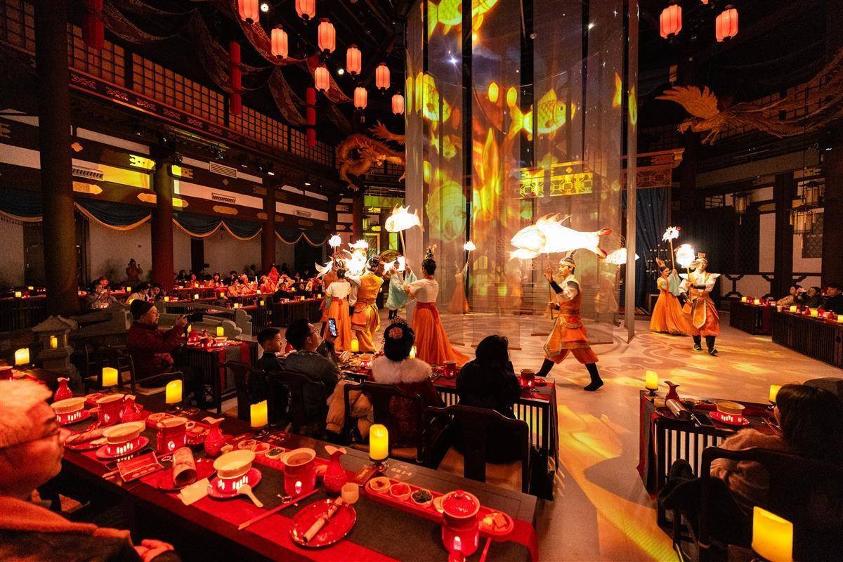 近年来,“边看演出边用餐”的沉浸式餐秀正成为文旅体验新趋势。美团旅行数据显示,2025年第一季度“沉浸式餐饮秀”搜索量同比激增近275%。洛阳“唐宫夜宴”、南京“金陵华梦宫宴”、重庆“渝味360碗·华礼宴”等项目,已成为许多城市的文旅新名片。