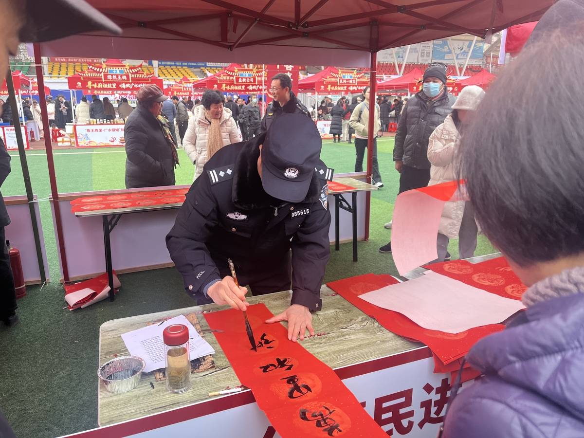 公安民警现场为市民写春联。(湖北日报全媒记者易雯摄)