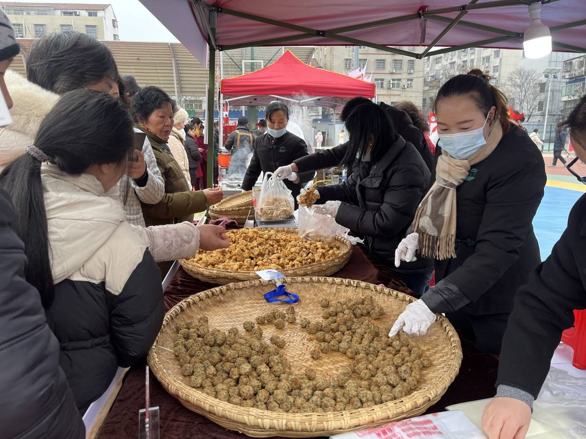 演出刚落幕,五大特色区域便被市民“围堵”。“詹王”美食品尝区里,炸滑肉外酥里嫩、泡馓子香酥脆爽、李三芝麻饼甜香醇厚,香气弥漫在广场上空,排队品尝的市民络绎不绝;年货展销区热闹非凡,蔡河箭杆白、吴店小黄姜、余店大白菜等地道食材整齐码放,本地黄牛肉现切现卖,鲜红的肉质吸引市民驻足询价、争相选购。
