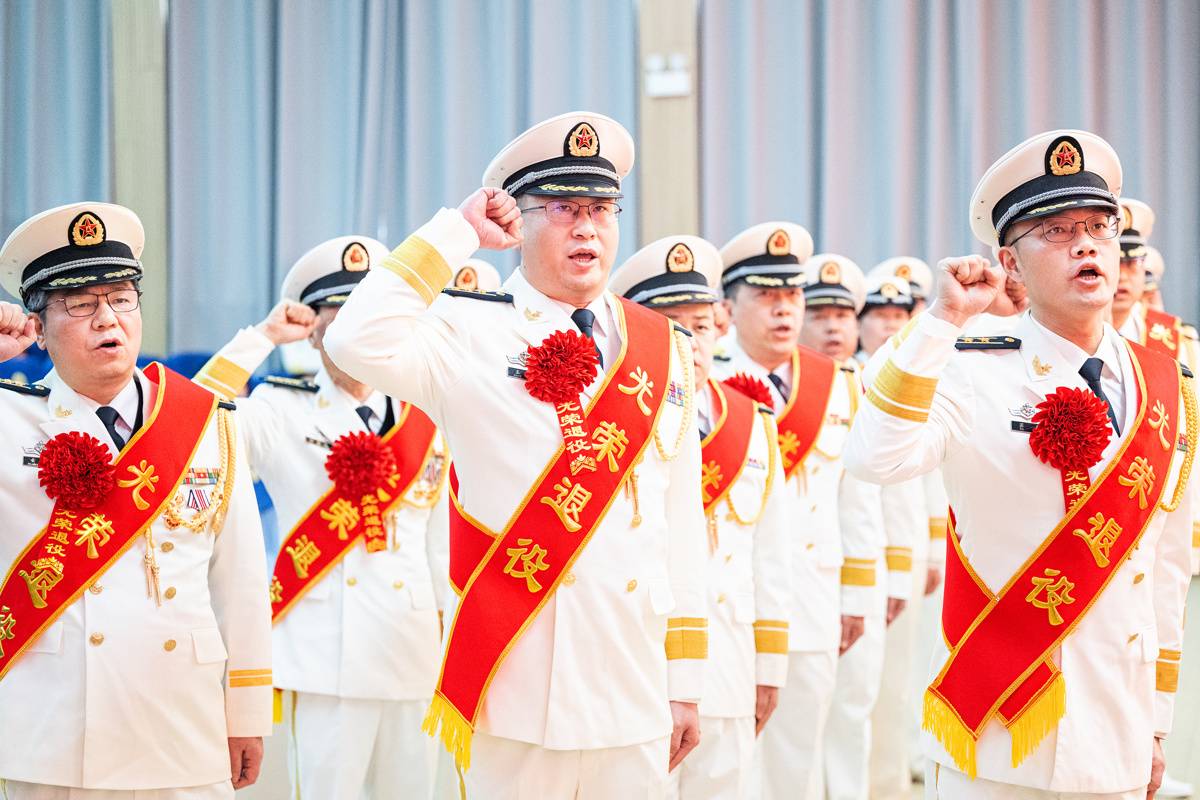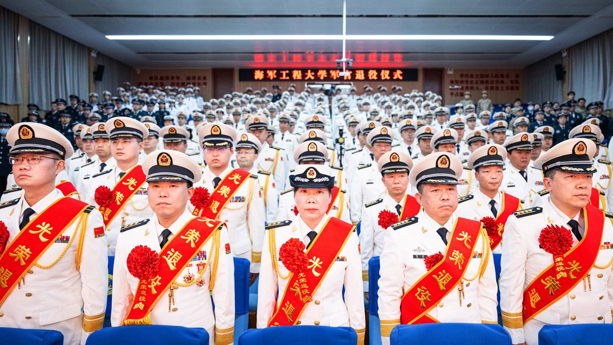 仪式上,海军工程大学领导庄重宣读退役命令,并为每一位退役军官颁发服役纪念章。