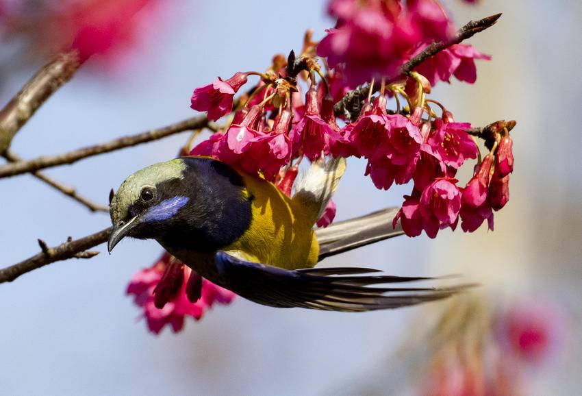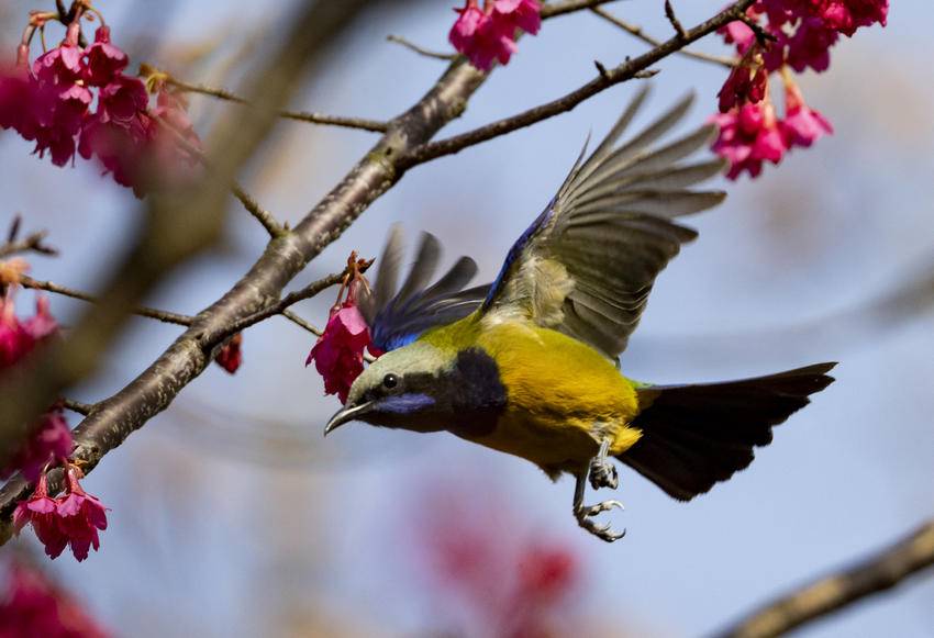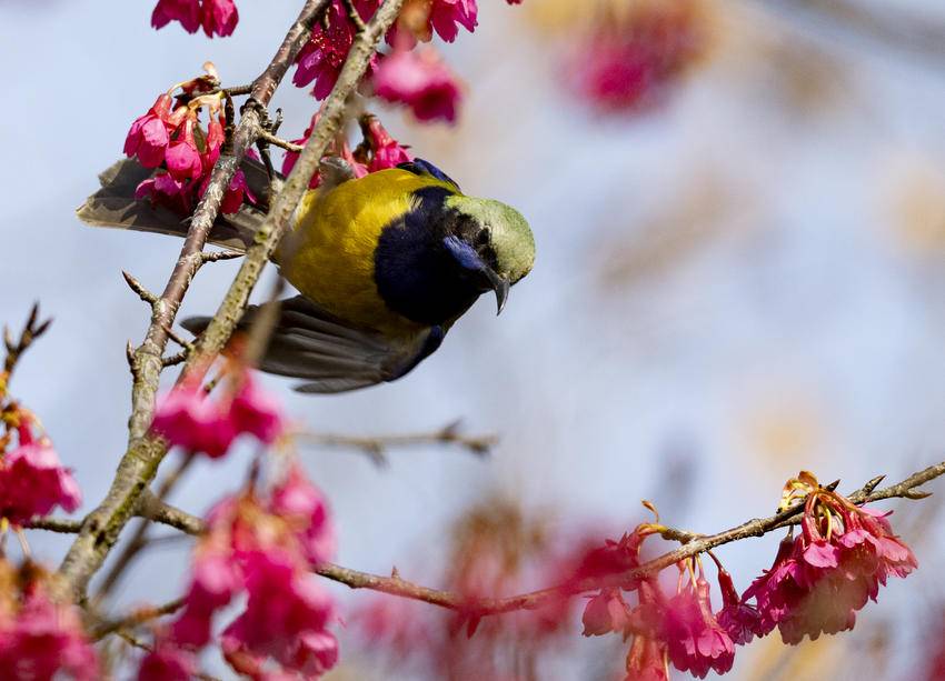 湖北日报客户端讯(通讯员吴承忠)立春节气临近,位于三峡工程坝上库首的湖北省宜昌市秭归县到处鸟语花香,春意盎然,呈现出一幅幅生机勃勃的景象。图为2026年2月2日,在秭归县茅坪镇望江公园拍摄的鸟语花香美景。