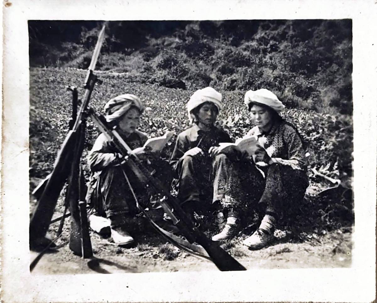 陈传香参加民兵训练(右一为陈传香)(受访者供图)
