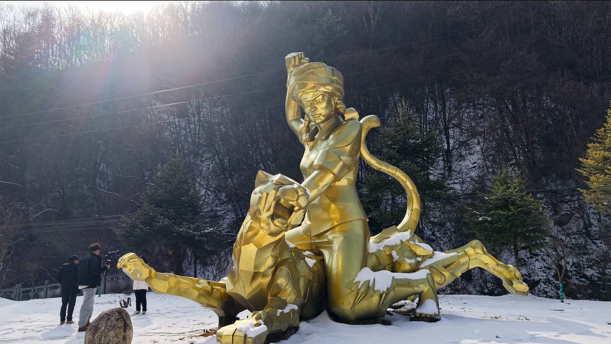 矗立在S284省道边上的陈传香雕像,成为游客网红打卡点
