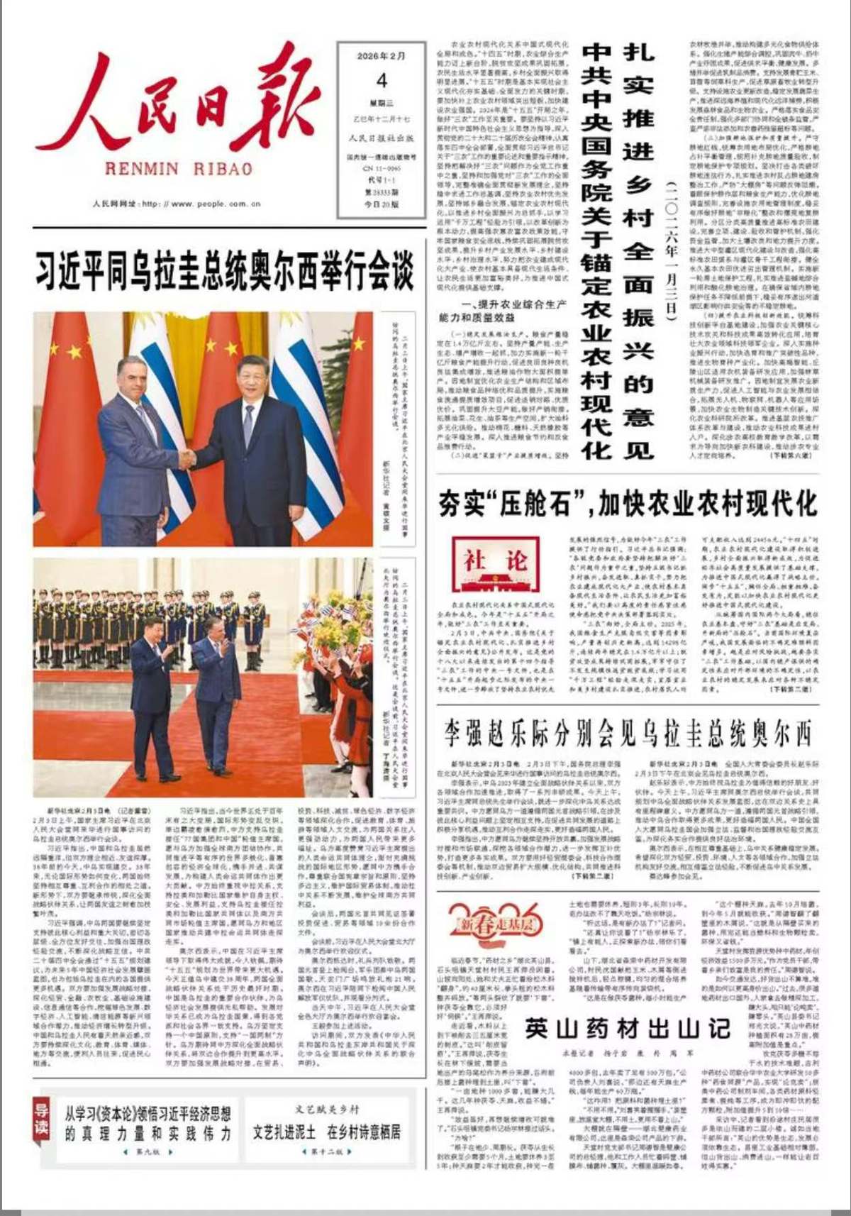 (2月4日《人民日报》,倒头条是英山茯苓的报道)