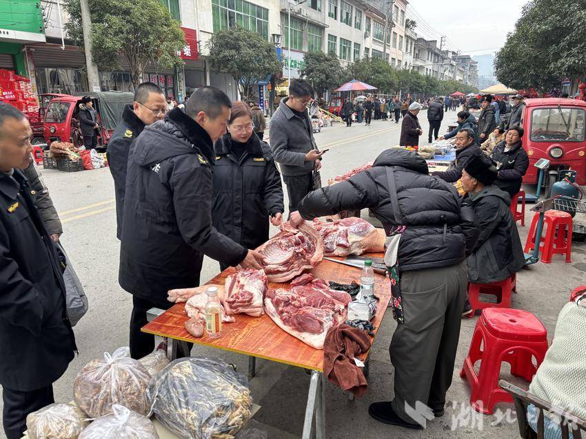 湖北日报讯(通讯员唐尧慧、曹征服、伍艺)2月3日,湖北省咸丰县大路坝市场监督管理所联合重庆市黔江区小南海镇综合执法大队,开展跨区域猪肉市场联合执法检查,重点覆盖大路坝区、小南海镇等猪肉集中销售点位,守护消费“放心肉”。