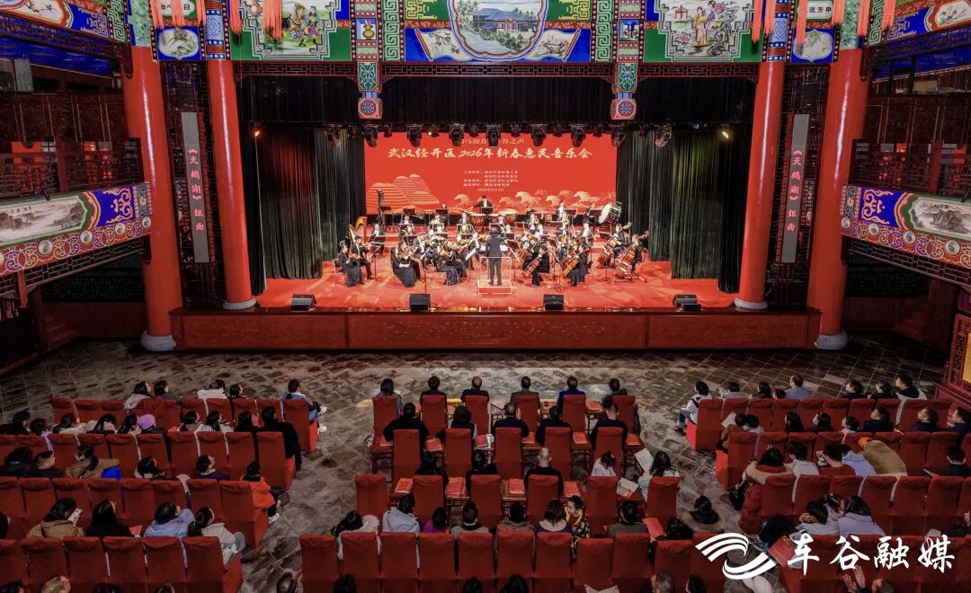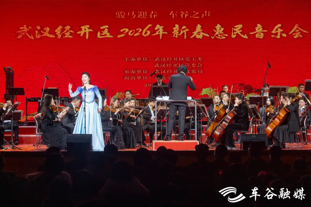 湖北日报客户端讯(通讯员金晨、李岿、覃丽)春启万物,福满车谷。2月4日晚,汤湖戏院灯火璀璨,“骏马迎春 车谷之声”武汉经开区2026年新春惠民音乐会在此举行。