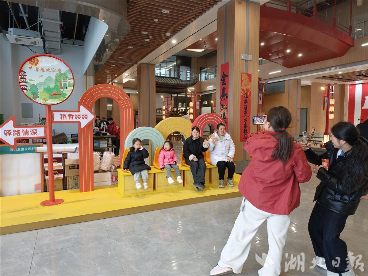 正值春运,全新的孝感服务区也迎来八方旅客。“策马奔腾”艺术打卡点、树上灯笼、创意玻璃贴等吸引众多旅客驻足拍照。服务区涵盖加油、充电、餐饮、购物、休憩等多功能空间,增设司机之家、母婴室等便民设施,并配置10台移动充电机器人。