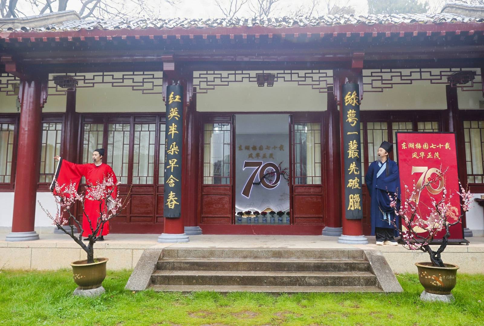 恰逢东湖梅园建园70周年,2月6日,东湖梅花展面向游客开放,在梅园一枝春馆内,系统展示了东湖梅园从1956年磨山南麓仅0.48公顷的试验性苗圃起步,茁壮成长为保存全球80%以上梅花资源的“国家梅花种质资源库”的发展历程,吸引不少游客和市民驻足观看。
