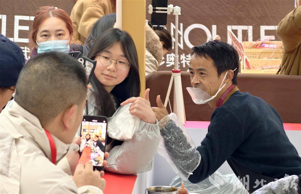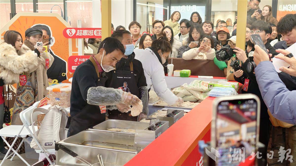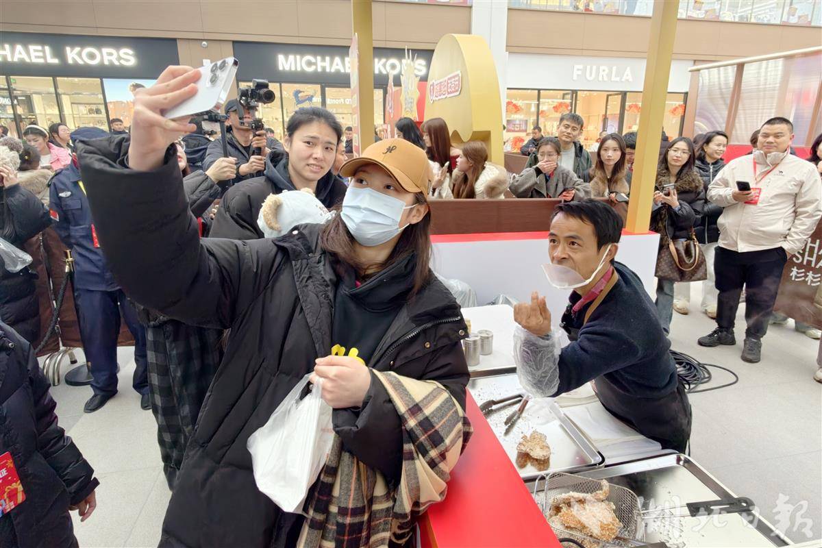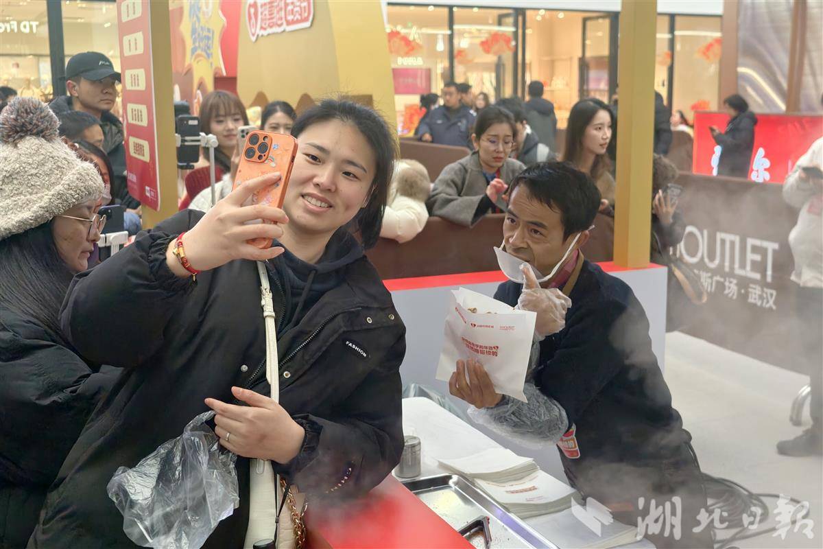 2月6日下午,网络红人“鸡排哥”李俊永携全国巡炸活动空降武汉经开区杉杉奥特莱斯,现场免费派送450份鸡排,吸引了大批市民争相打卡,排起一眼望不到头的长队。活动现场氛围热烈,“鸡排哥”的独特魅力与精心制作的美食引爆市民热情。同时,现场免费领鸡蛋活动也增添了节日氛围。(湖北日报全媒记者 陈少哲 摄)