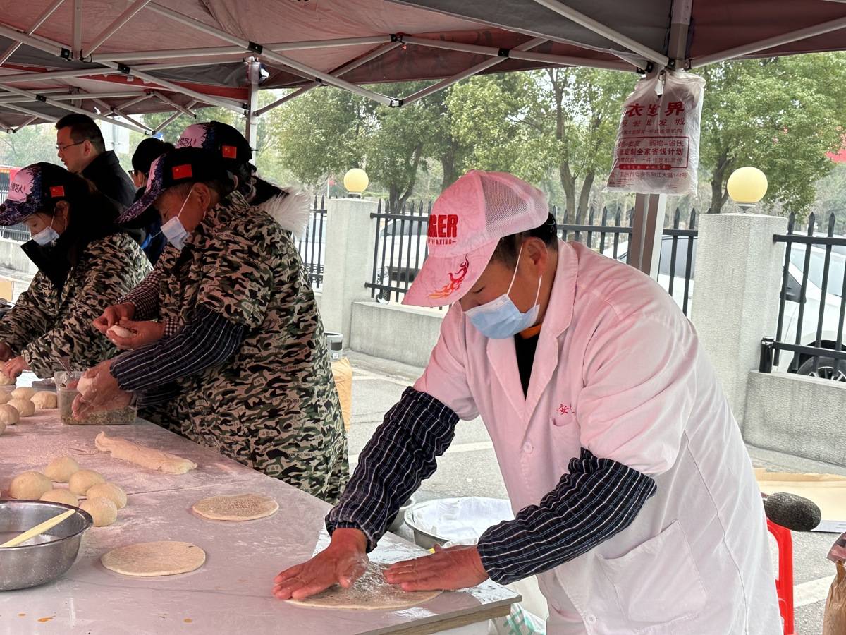 揉面、搓团、撒芝麻、入烤炉,“公安锅盔师”王世荣带着四名师傅现场制作锅盔,免费提供给前来咨询的求职人员。“免费培训,时间通常是12天,有了一技之长,学员们可以自己就业创业。”王世荣说。