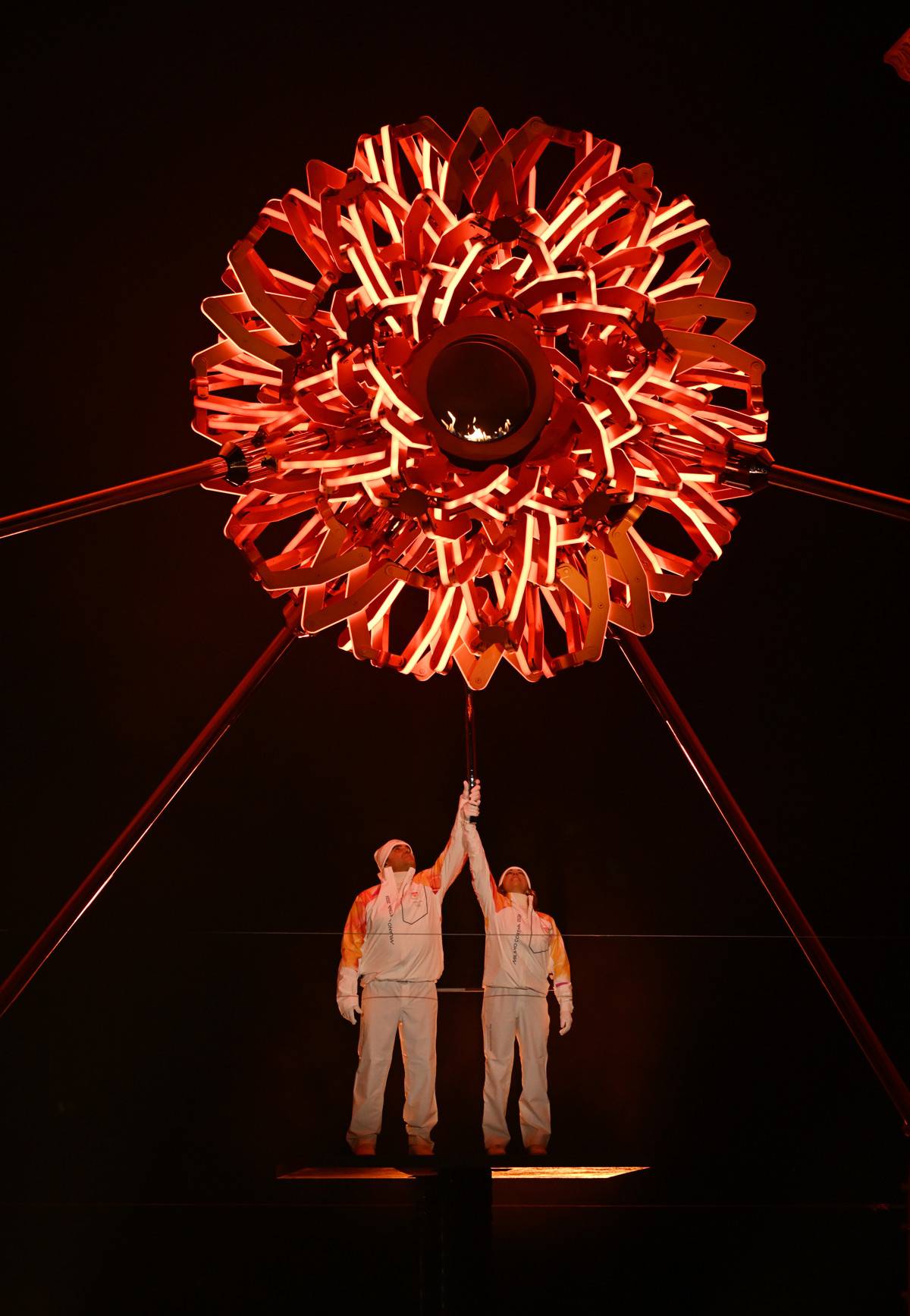 激动人心的圣火点燃仪式,将开幕式的氛围推向高潮。从希腊古奥林匹亚采集的奥运圣火,历经在意大利境内63天的传递,如期抵达开幕式现场。在全场观众的欢呼声中,米兰和平拱门、科尔蒂纳迪博纳广场的两座主火炬台同时被点燃。据导演团队介绍,主火炬台的设计灵感源自意大利文艺复兴巨匠莱昂纳多・达・芬奇的几何绳结图案,采用可变几何结构,可实现动态开合,尽显巧思与创意。