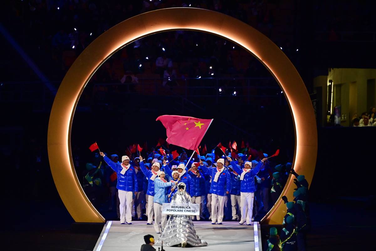 2月6日,中国体育代表团在意大利科尔蒂纳参加入场仪式。