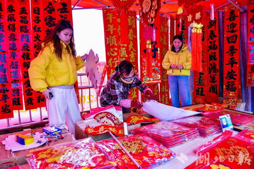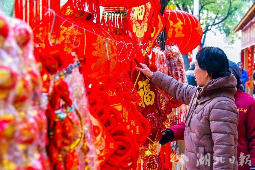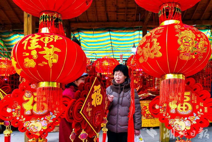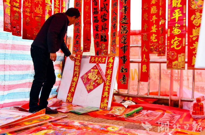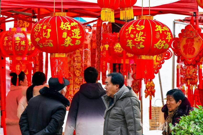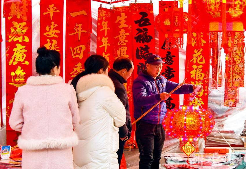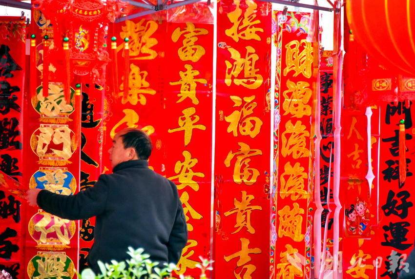 图为2月7日,市民正在选购春节喜庆文化用品时的情景。