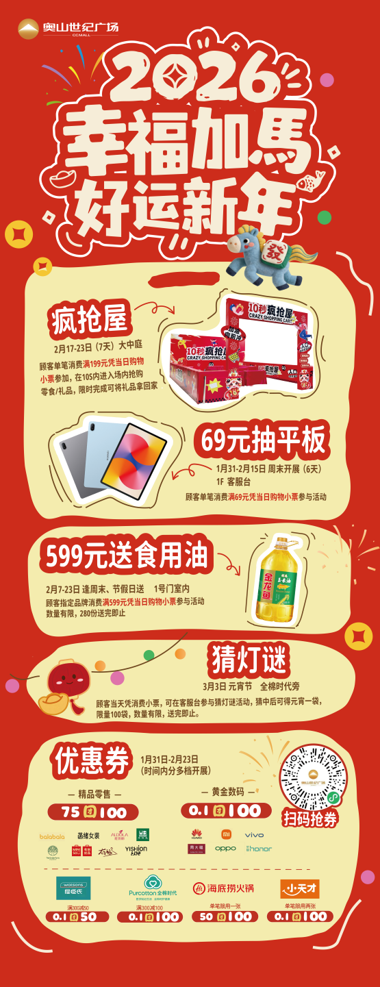 春节期间,青山商场推出“红运新年 马上有福”主题特色活动,只等您来!