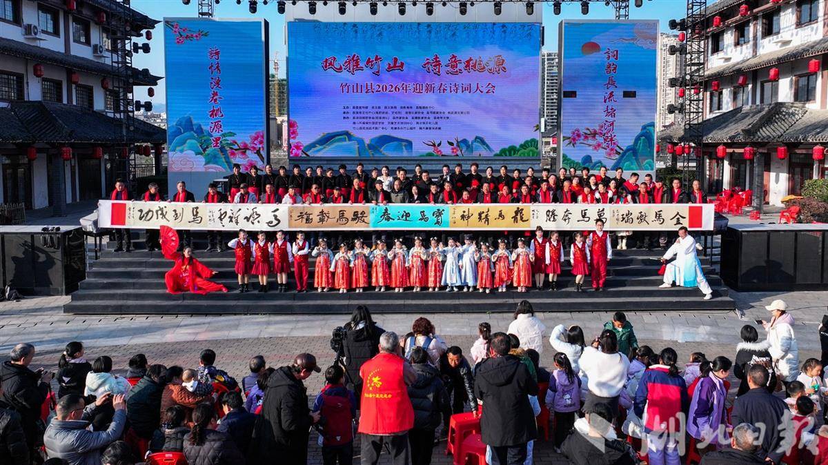 竹山县2026年迎新春诗词大会,系“寻味桃花源·乐购迎新春”县域商业促消费活动之一。(湖北日报通讯员 章伟 摄)