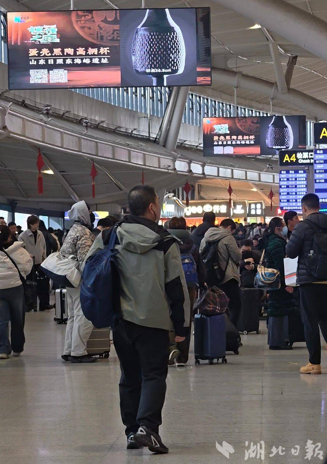 春运期间,武汉站人来人往,归乡人潮不断涌动(湖北日报全媒记者汪子轶摄)