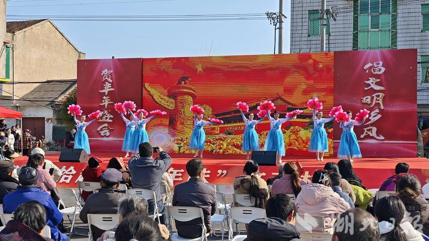下午2点,文艺村晚在欢声笑语中拉开帷幕。舞蹈翩跹、歌声清亮、民乐悠扬,古筝流淌出山水之韵,武术展现着力量之美。带有浓郁楚地风情的快板莲湘、湖北道情等节目穿插上演,乡音乡情扑面而来。演出间隙,青年干部以“春风拂暖处,新风进万家”为题,开展移风易俗宣讲,为这场传统节庆活动注入了清新时代气息。