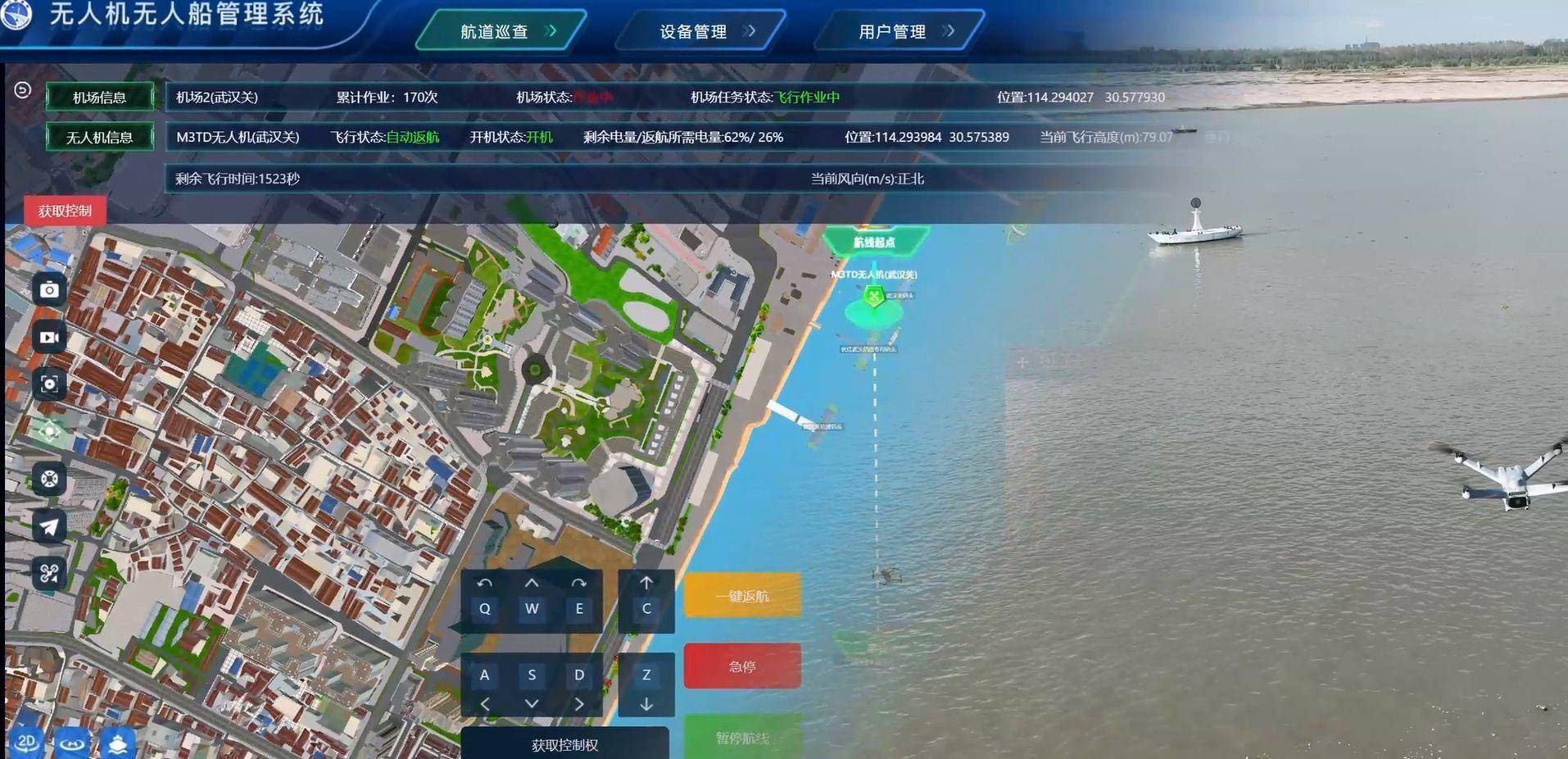 “智慧航道远不止于无人机”,郭尧强调,“智慧航道运用AI视频轮询、无人船测量等技术,构建‘水、陆、空’一体化监测网络,实现全方位感知。”