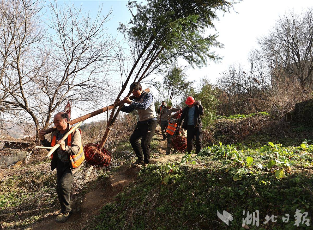 湖北日报讯(通讯员程平、喻官红)2月5日,竹山县城关镇南山公园植物园建设现场一片热火朝天,施工人员分工协作,小心翼翼地将一棵棵全冠幅、带土球的精品红豆杉移栽定植,翠绿的枝叶在寒风中舒展,为秦巴山水间增添了一抹生机盎然的新绿。