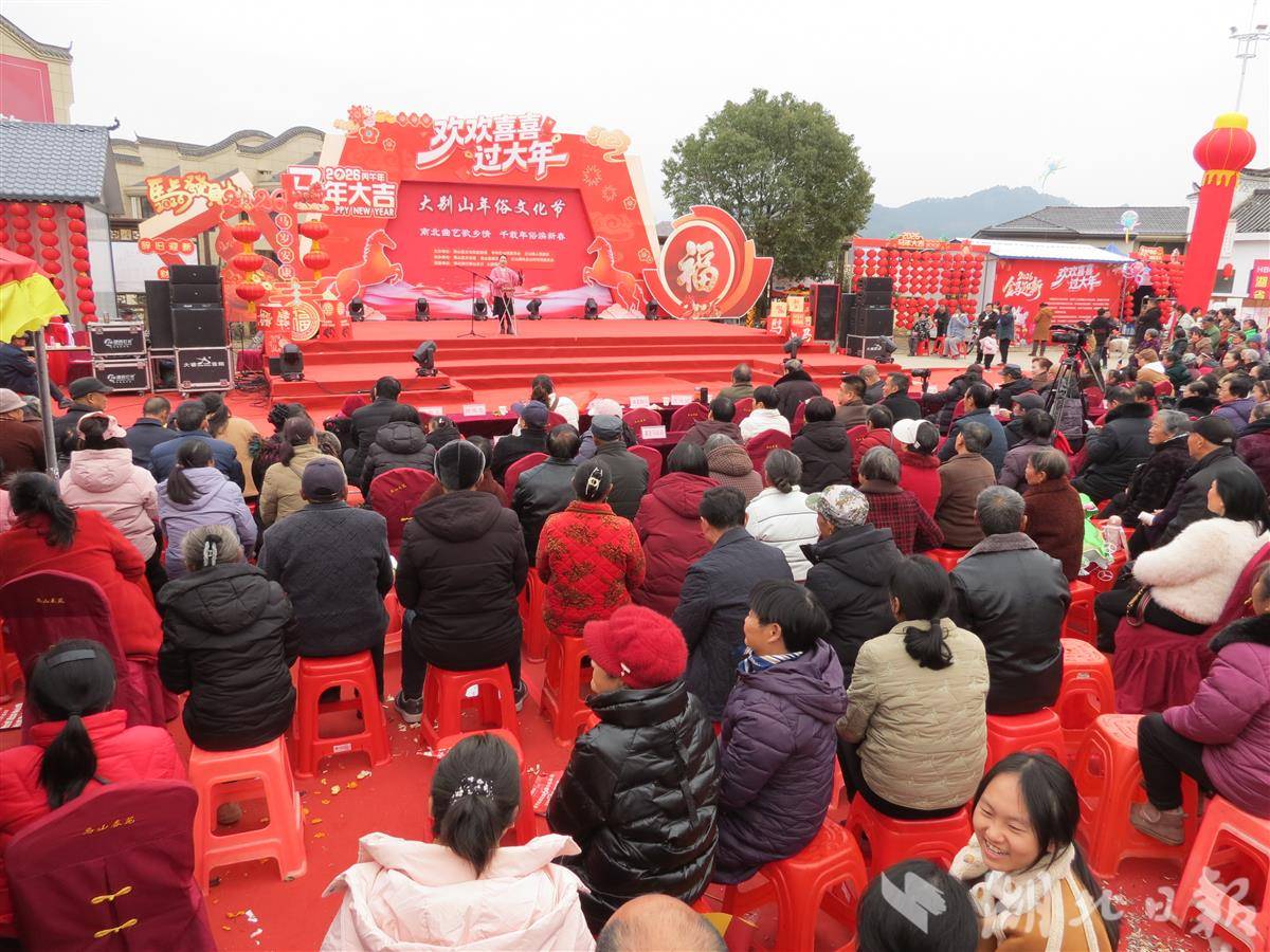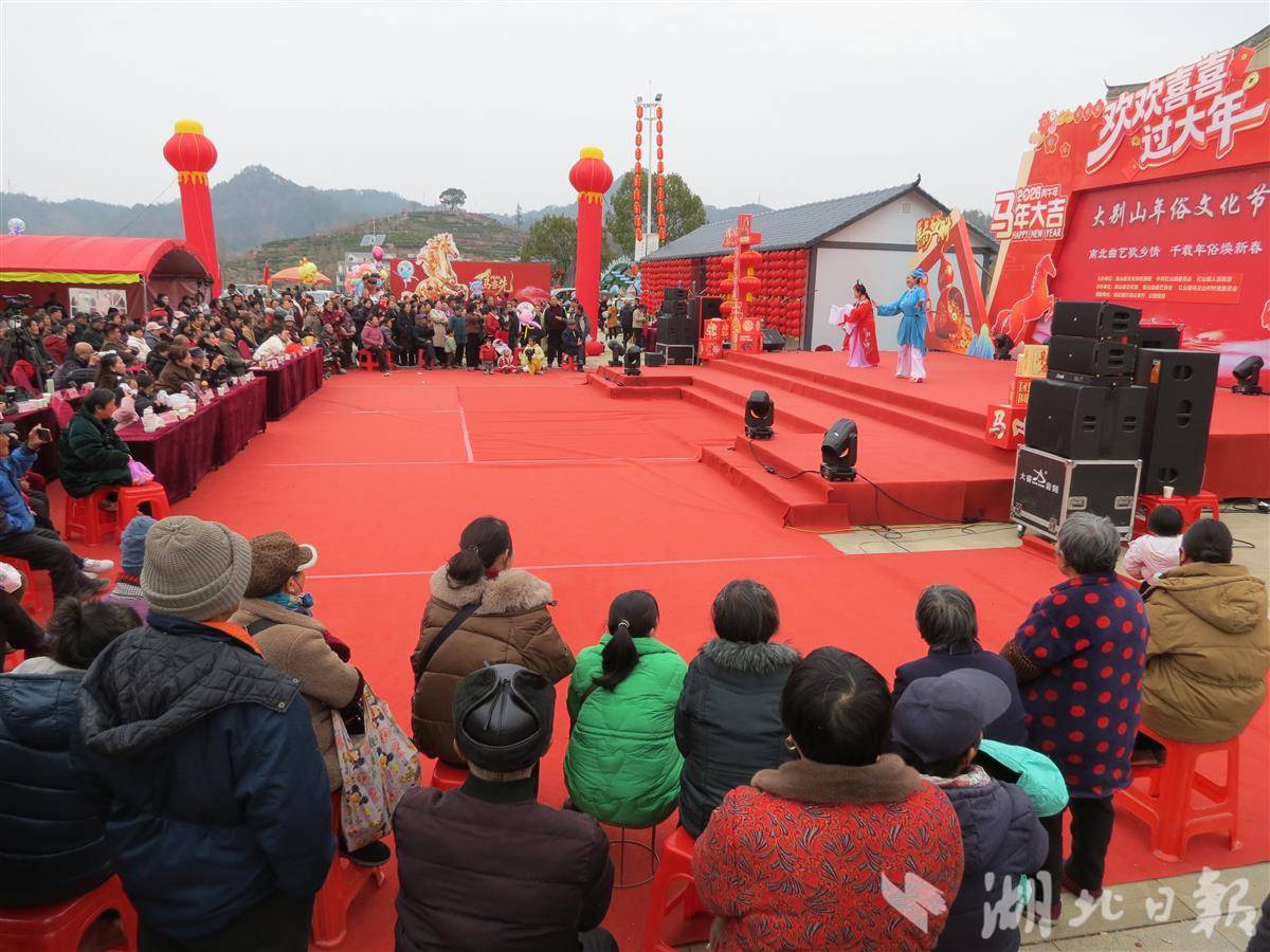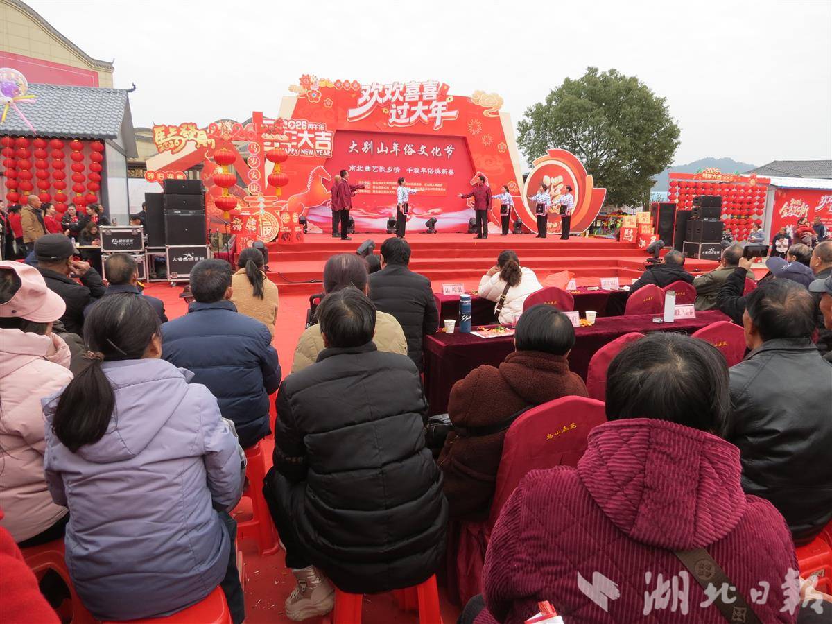 湖北日报讯(通讯员童曙明)2月3日以来,由英山县文旅局、红山镇党委、镇政府主办,英山县文化馆、英山县曲艺协会、乌云山村委会承办的大别山年俗文化节在国家AAA景区——英山乌云山茶叶公园广场举行。每天都有近千名群众从四面八方赶到现场观看丰富多彩的年俗文化节目,英山周边的8个县市的代表队也来参加活动。