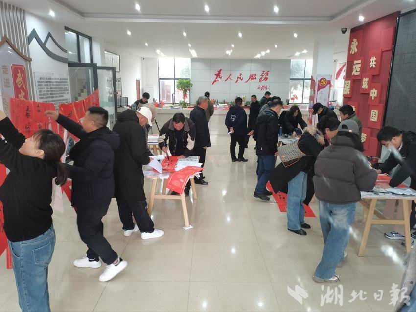 活动现场,武汉纺织大学沈祥胜教授、洪山区文联副主席陈迪炎、书法家肖长武、黄权法等老师挥毫泼墨,为居民们书写春联和“福”字。一副副寓意吉祥的春联在笔尖流转,将新春祝福送到每一位居民手中。居民们围在桌前,欣赏着书法艺术,挑选着自己心仪的春联,脸上洋溢着幸福的笑容。