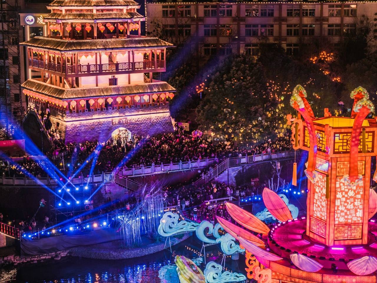 全省各地文旅场所、景区以国潮、非遗、光影秀、实景演出为主要形式,广泛举办舞龙舞狮、新春灯会、古风游园、民俗巡游、戏曲杂技等传统项目,与现代化声光电技术结合,营造浓郁胡春节氛围,为市民和游客打造沉浸式文化体验。