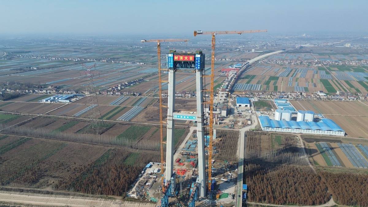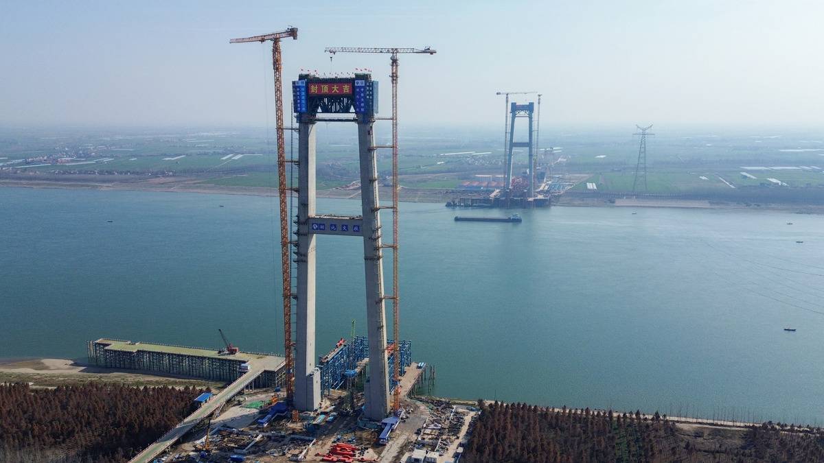 湖北日报讯(记者刘澍森、通讯员李晓鹏)2月9日,正值春运返乡、万家团圆之际,一场壮观的“空中会师”在长江荆州段上演。由湖北交投集团投资建设,中建三局、中铁建大桥局承建的荆州李埠长江公铁大桥迎来重大节点:其北岸、南岸两座主塔在同日内相继顺利封顶。这标志着这项世界级桥梁工程正式转入上部结构施工新阶段,建设全面提速。