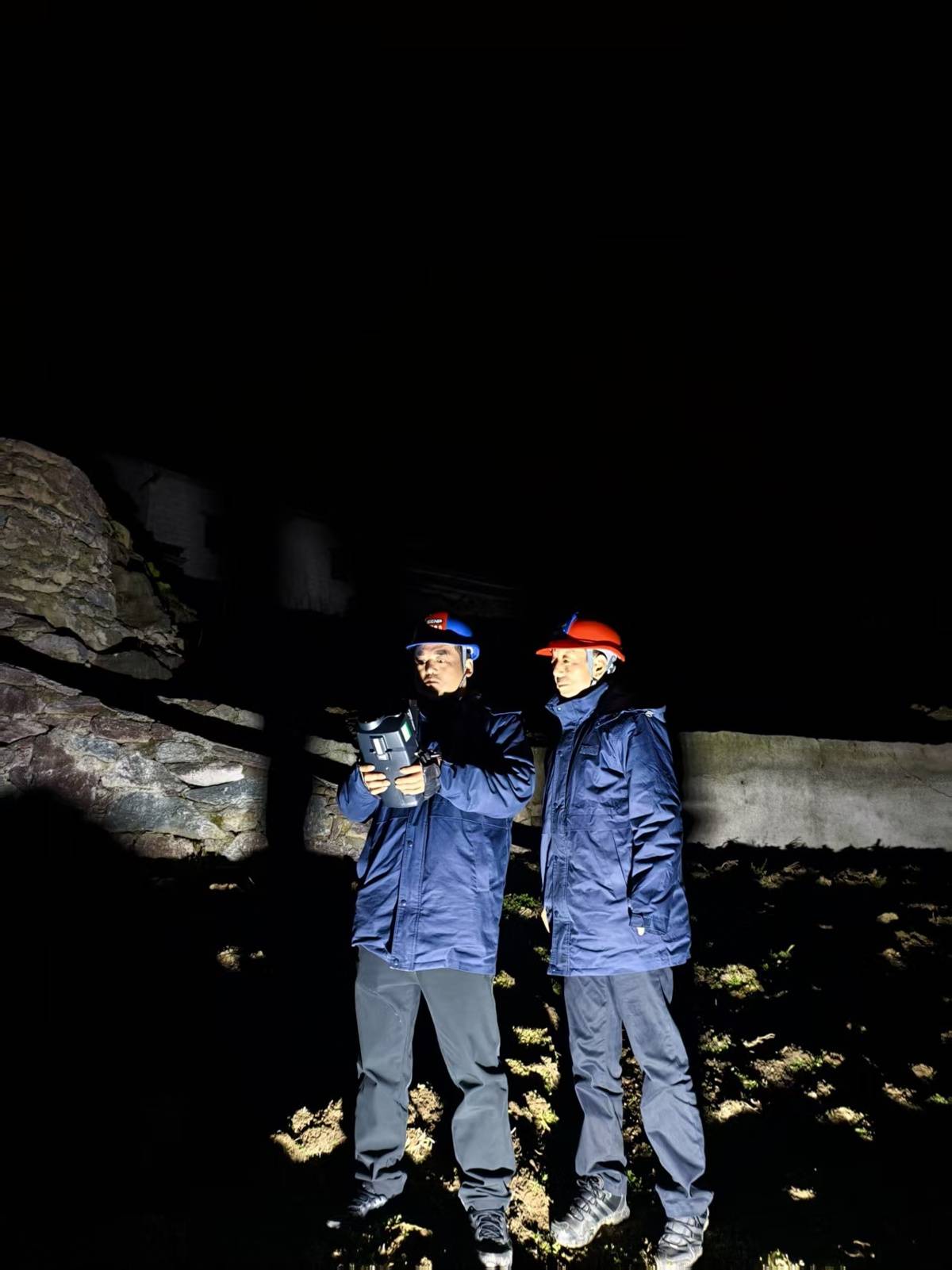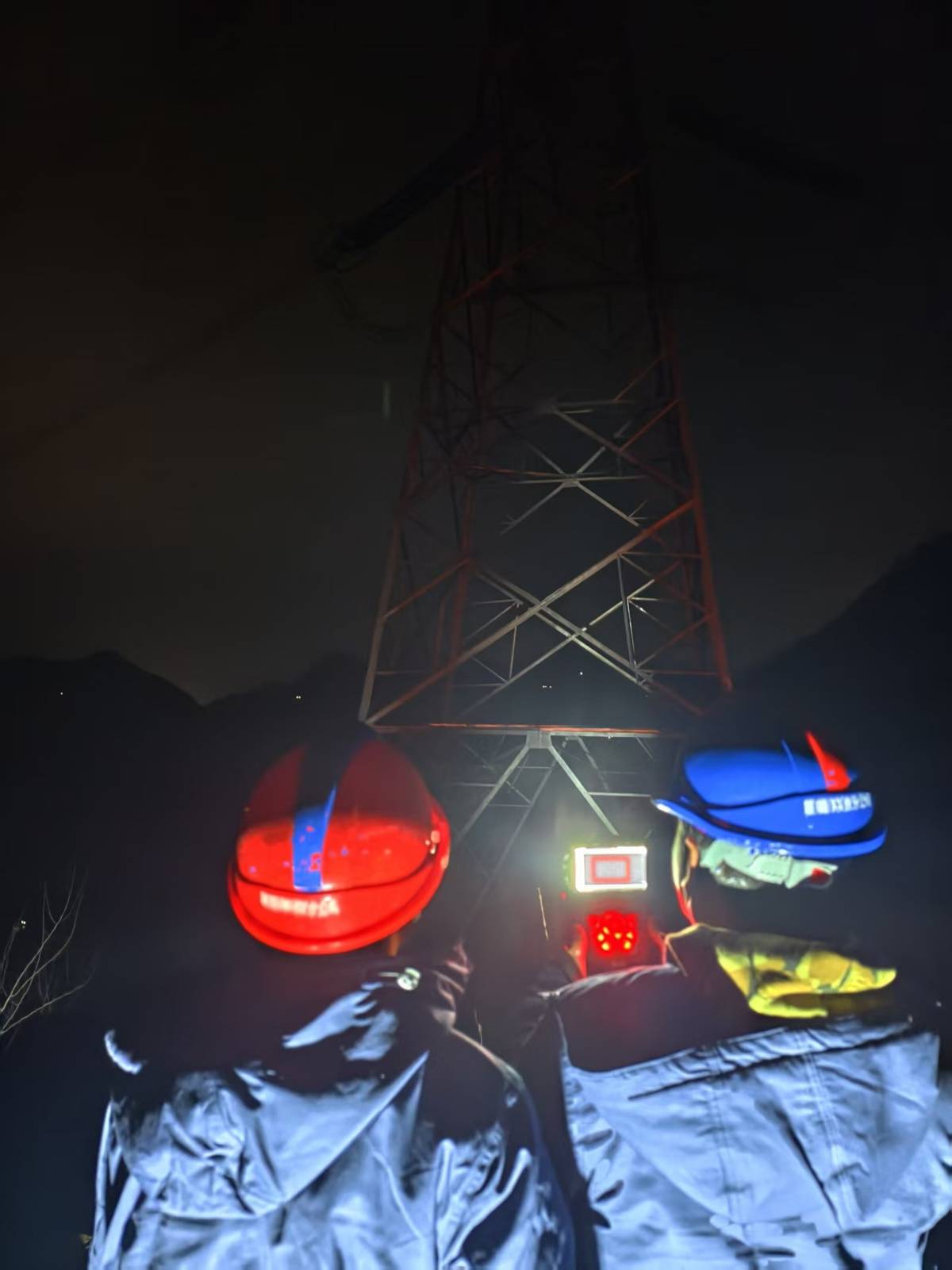 风雪中,红蓝相间的安全帽在应急灯光下格外醒目。因低温风雪天气,设备镜头极易积雪,队员们不时停下操作擦拭镜头,始终以严谨的态度反复核验导线、金具等关键部位,每一个操作都精准规范。半小时里,队员们在寒风中坚守作业,细致排查每一处点位,确保隐患排查无死角。最终,检测结果正式出炉:线路设备无异常,疑似过热隐患被彻底排除。