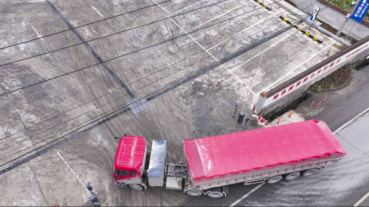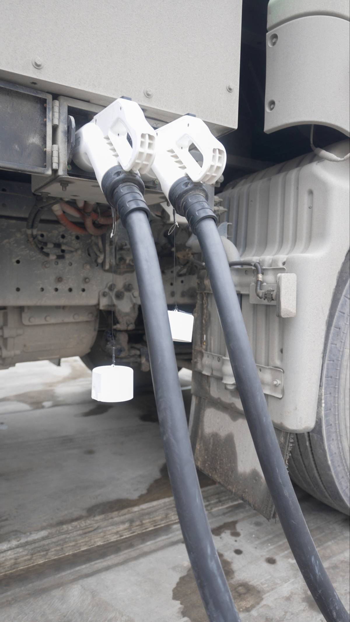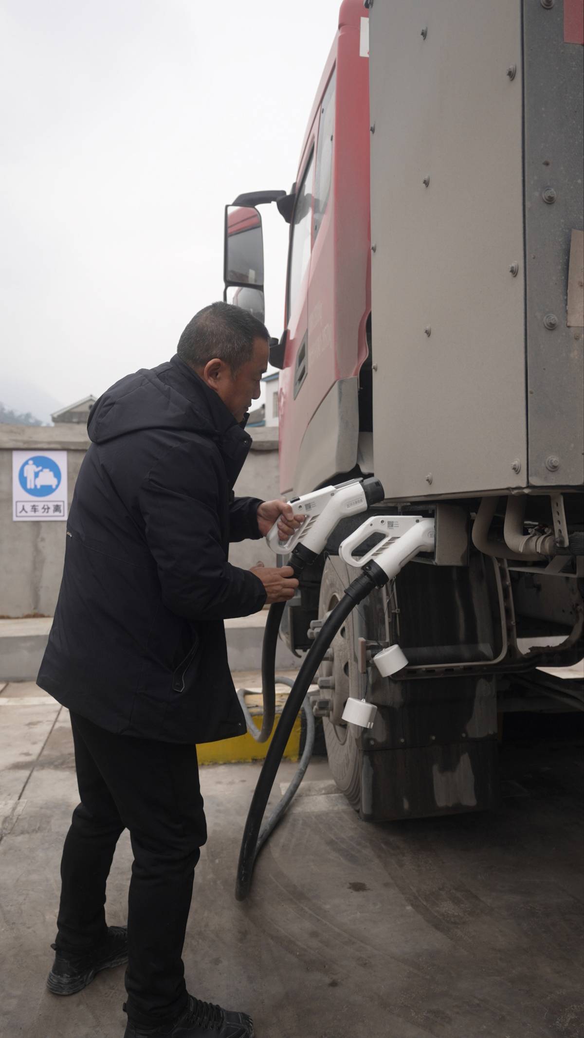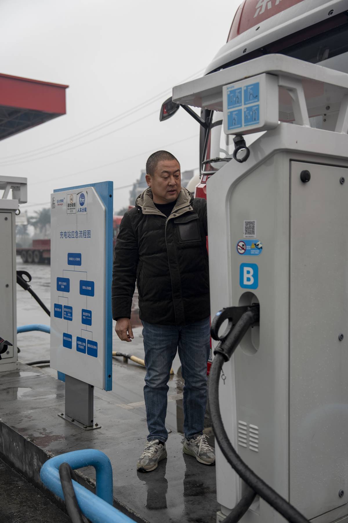 司机易师傅正在给他的重型半挂车充电。湖北日报全媒记者 夏晓君 摄