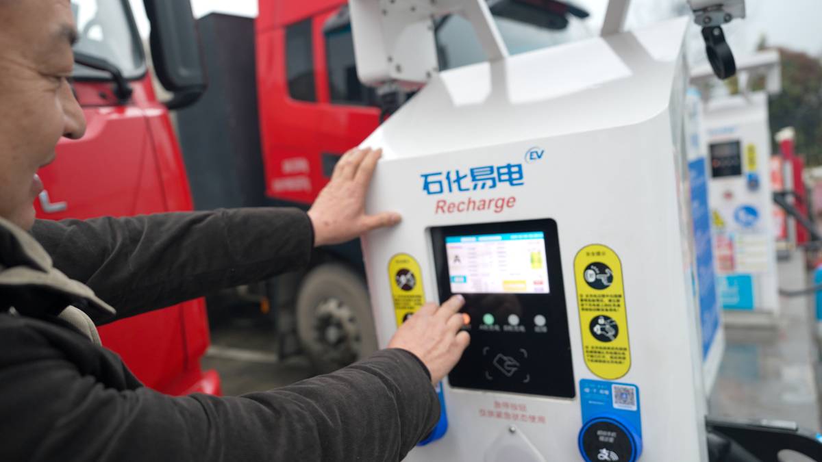 中石化宜都梅子园超充站可同时为28辆重型半挂车充电。湖北日报全媒记者 夏晓君 摄