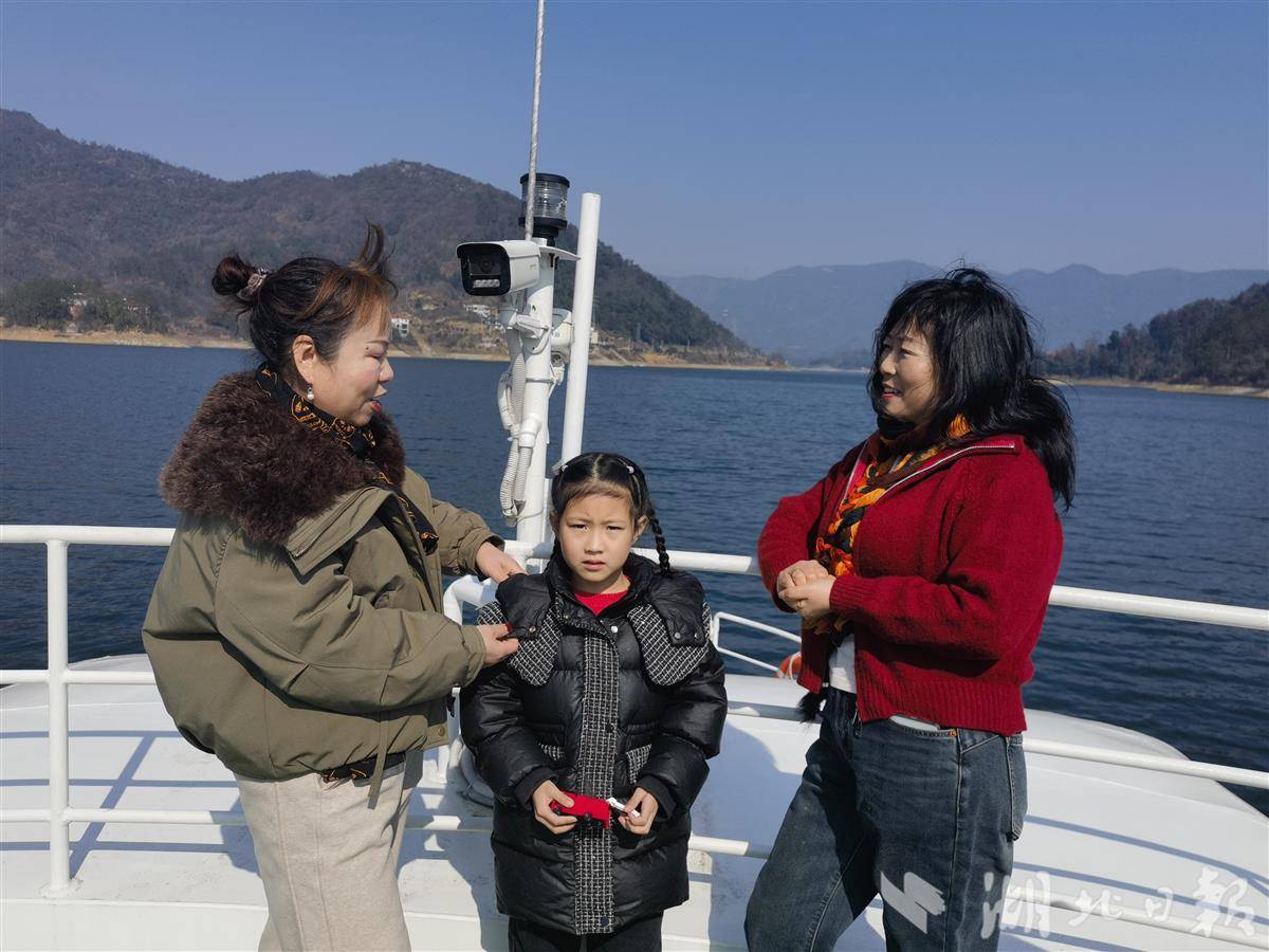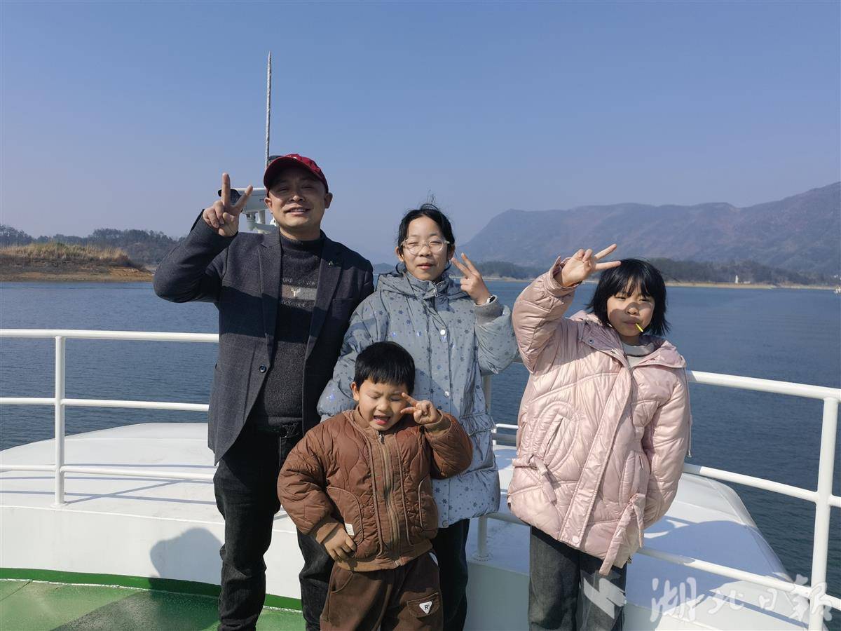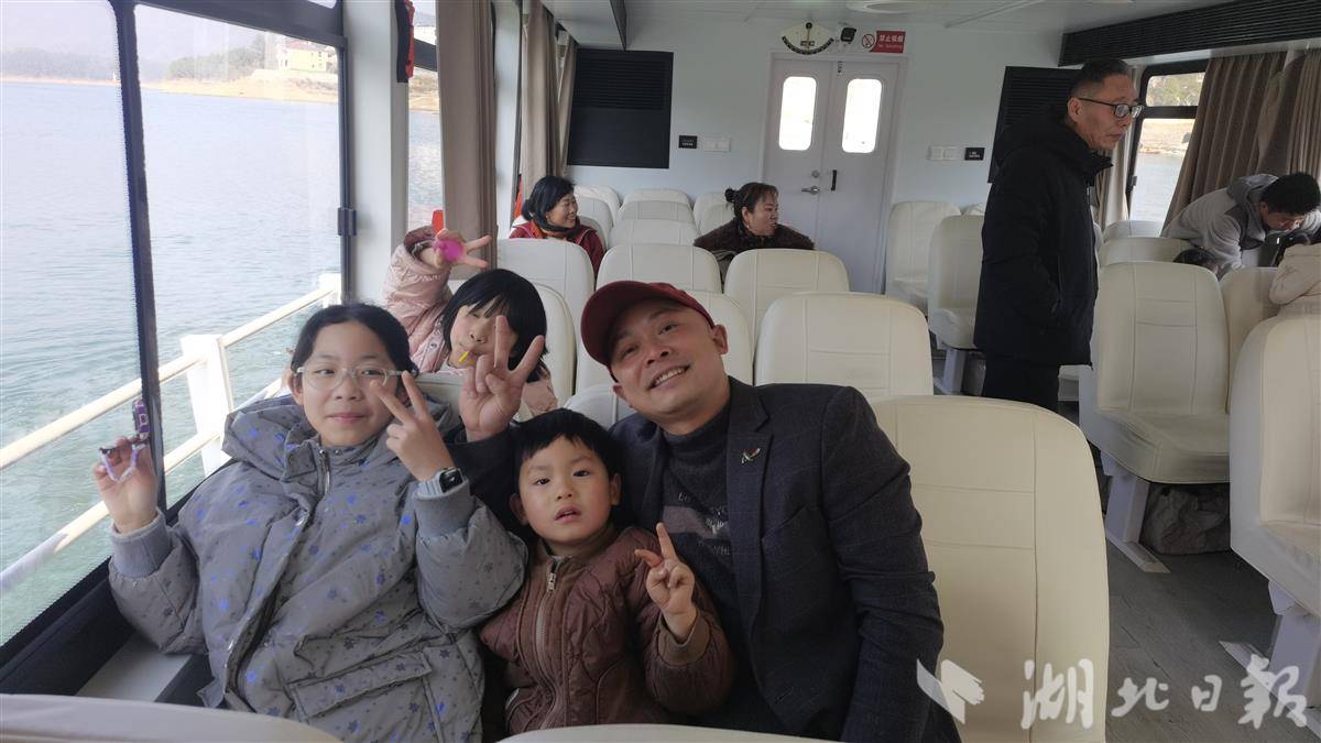 阳新返乡游子在新能源渡船游玩(湖北日报全媒记者 戴辉 摄)