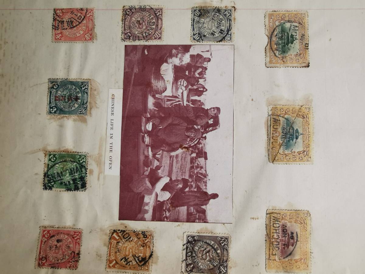 密尔顿教授生前珍藏的中国老照片和福州友人来信所贴邮票。