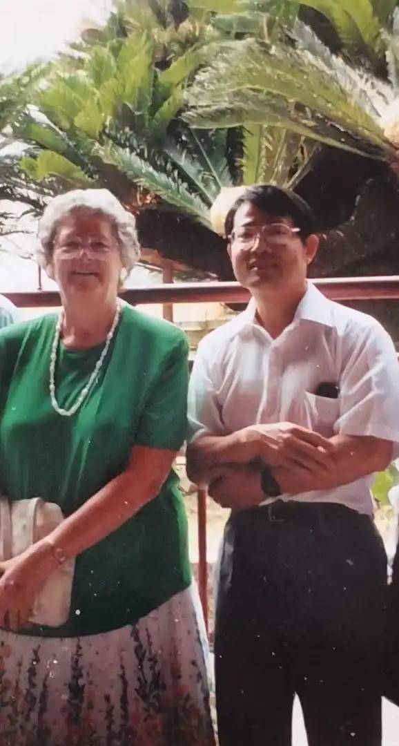 上世纪90年代,刘中汉(右一)和伊丽莎白女士在一起。
