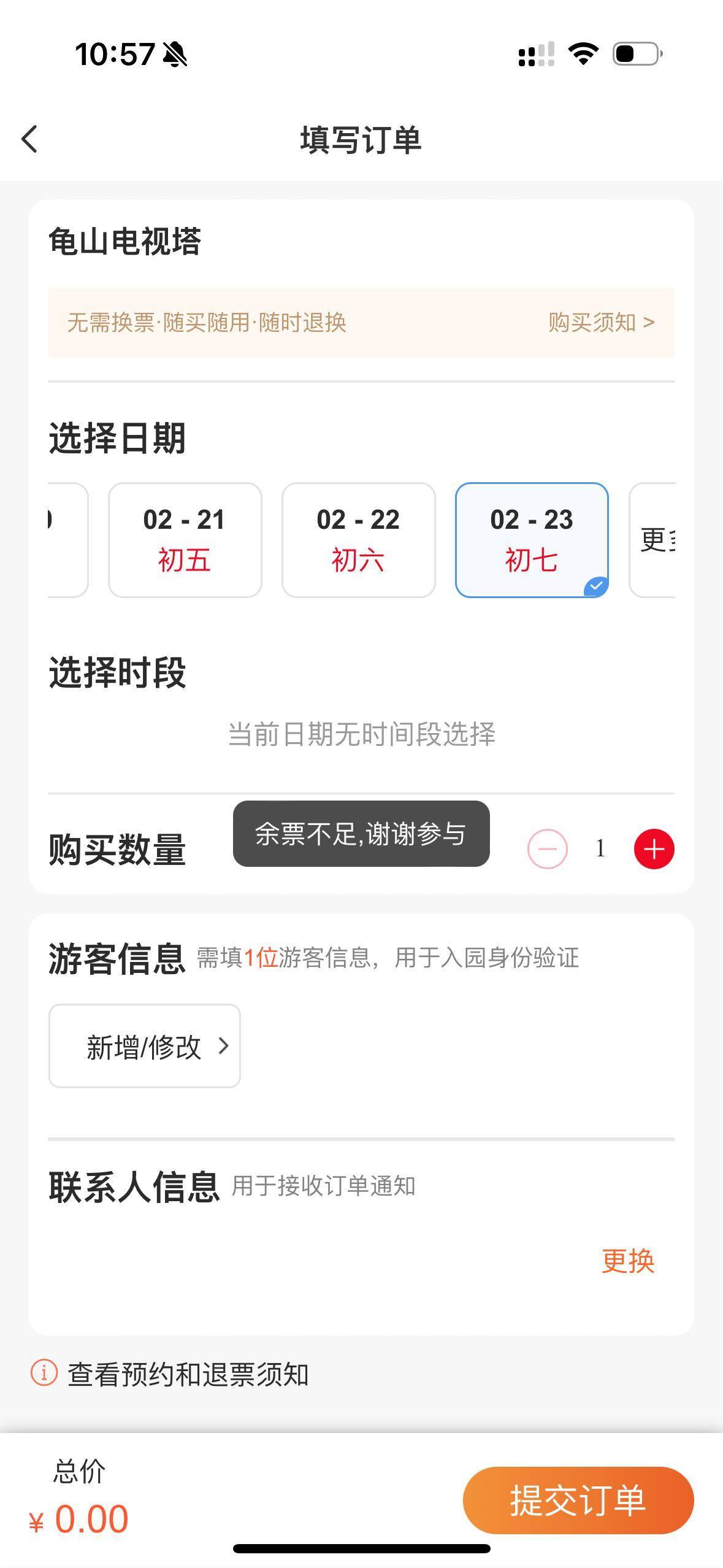 湖北日报讯(记者朱惠)手慢无!2月10日10时,龟山电视塔开启参观预约通道。11时许,湖北日报全媒记者登录长江云APP实名预约,系统显示从大年初一(2月17日)至初七(2月23日)的4200张免费参观票已被抢订一空。