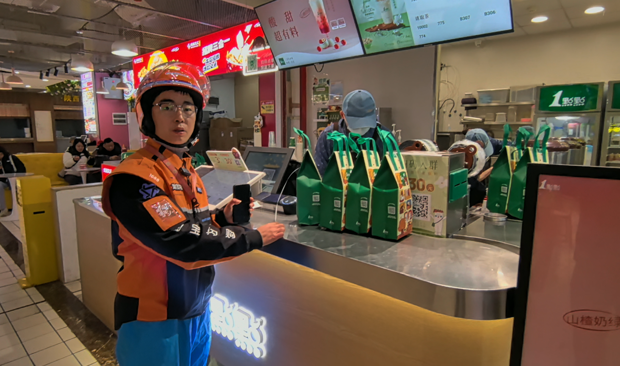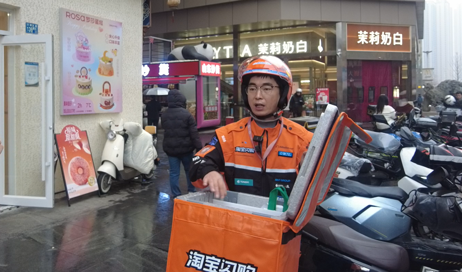 “再忙,‘安全’二字也是第一位。”来到一处店铺取餐间隙,他说:“民以食为天,食以安为先。外卖员负责餐食的‘最后一公里’,责任不小。”