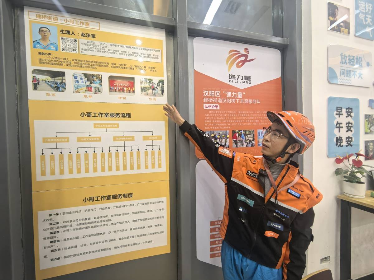 赵承军是汉阳区建桥街道小哥工作室主理人。